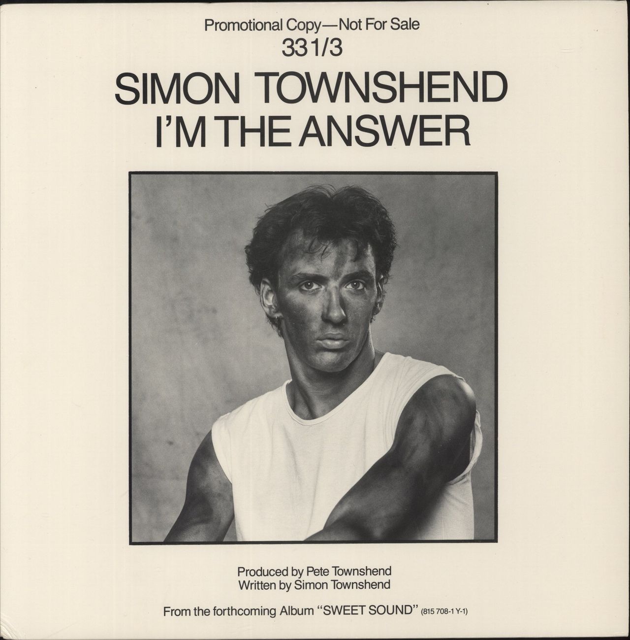SIMON TOWNSHEND I'm The Answer (1983 US promotional vinyl 12" for the single release, produced by Pete Townshend, featuring the Album and Edited Versions PRO238)