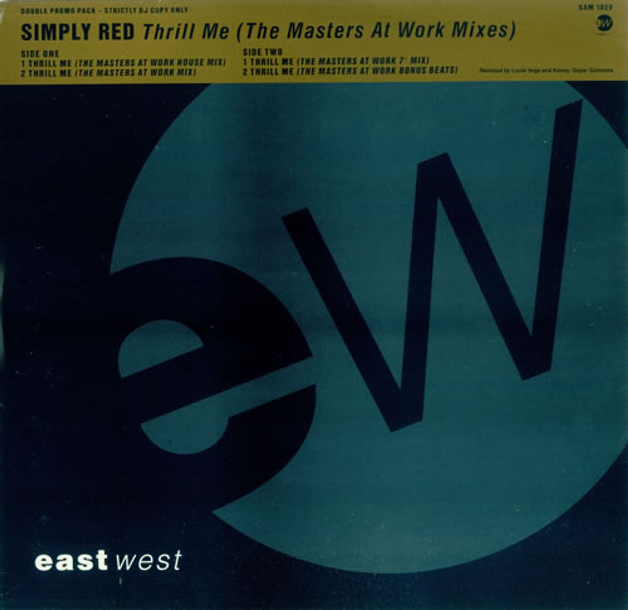 SIMPLY RED Thrill Me (1992 UK 7-track promotional 7-track 12" DJ doublepack, feauturing sought after House & Balearic Club mixes by Masters At Work [Kenny 'Dope' Gonzalez & Louie Vega] & Underworld [Darren Emerson & Rick Smith], custom title sleeve. The sleeve shows minimal wear & the vinyl appears barely played SAM-1020)