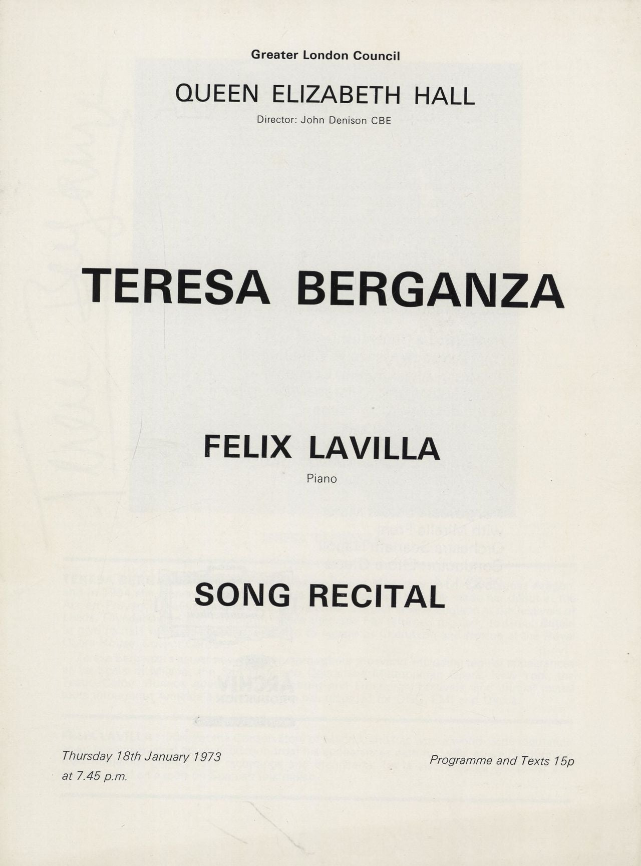 Tereza Berganza Song Recital - Autographed UK Tour programme