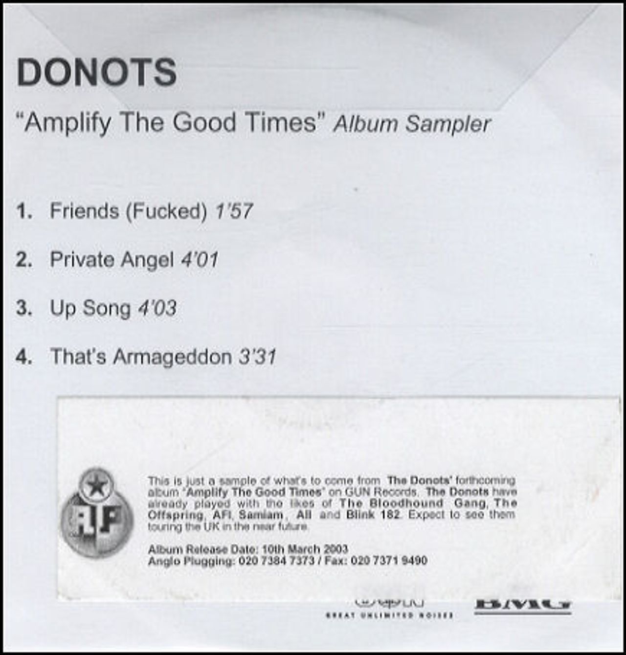 THE DONUTS Amplify The Good Times - Album Sampler (Rare UK