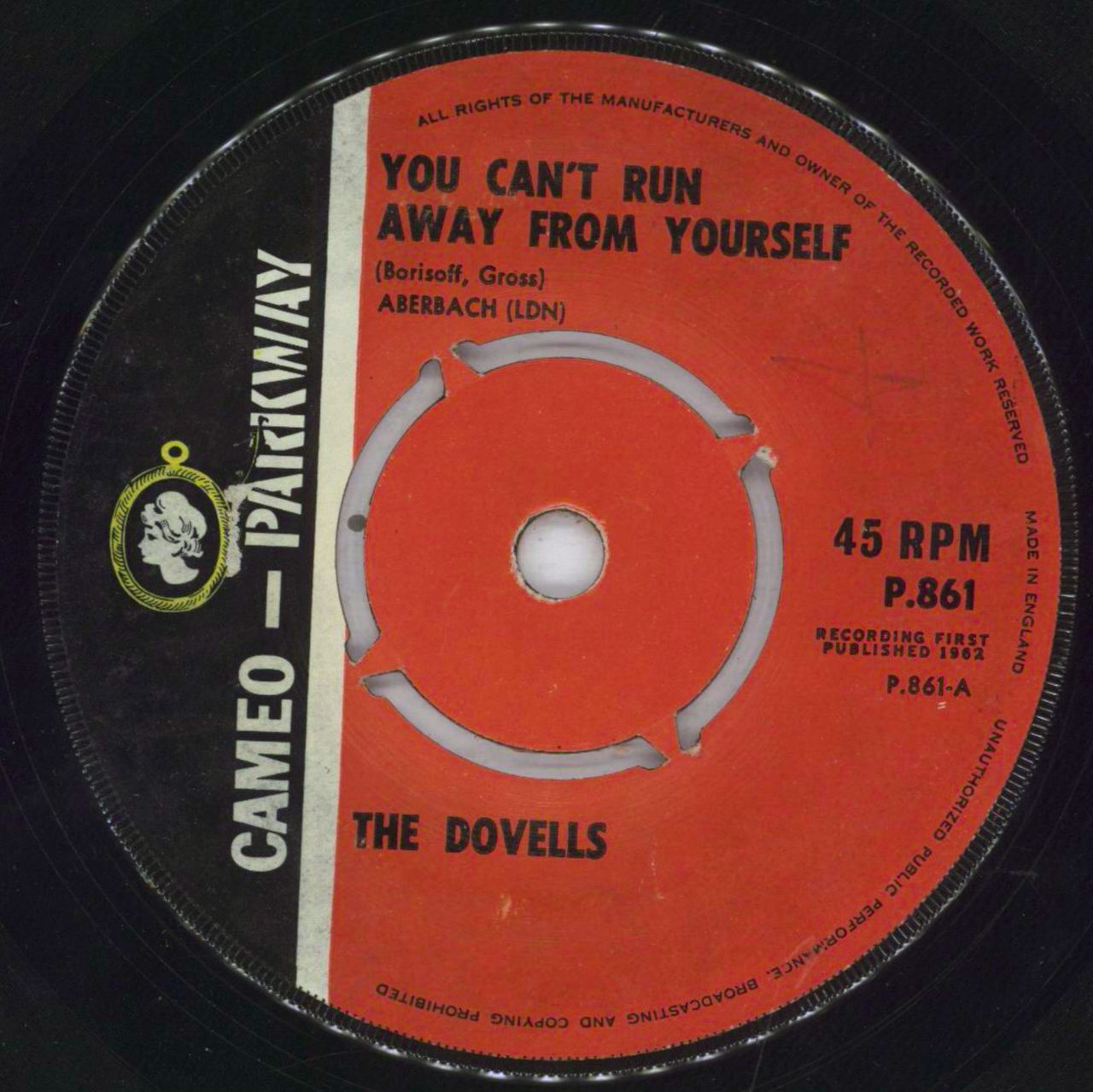 THE DOVELLS You Can't Run Away From Yourself (1962 UK 7" vinyl single with intact four prong centre, also including Save Me Baby, plain die cut paper sleeve P.861)