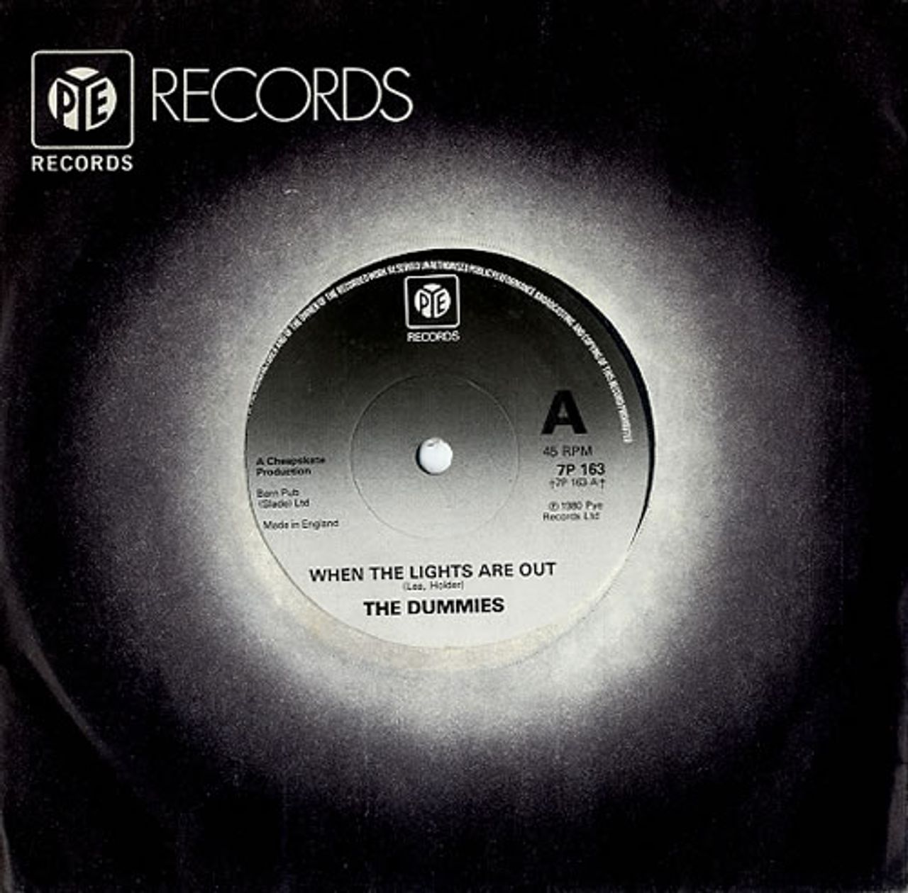 THE DUMMIES When The Lights Are Out (1980 Pye issue of the 1979 UK 7" vinyl single written by SLADE's Noddy Holder & Jimmy Lea, also including She's The Only Woman, Pye company die-cut paper sleeve 7P163)