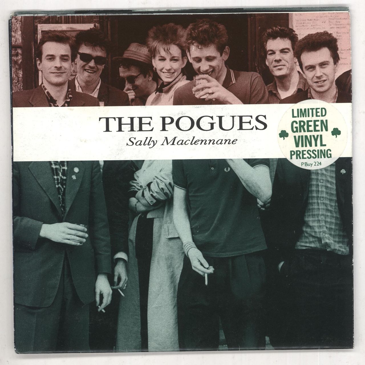 THE POGUES Sally Maclennane (Scarce 1985 UK Stiff Records label 7" single pressed on Green Vinyl, also including The Wild Rover, with production by Elvis Costello. Housed in a fold-out poster sleeve with original hype sticker BUY224)
