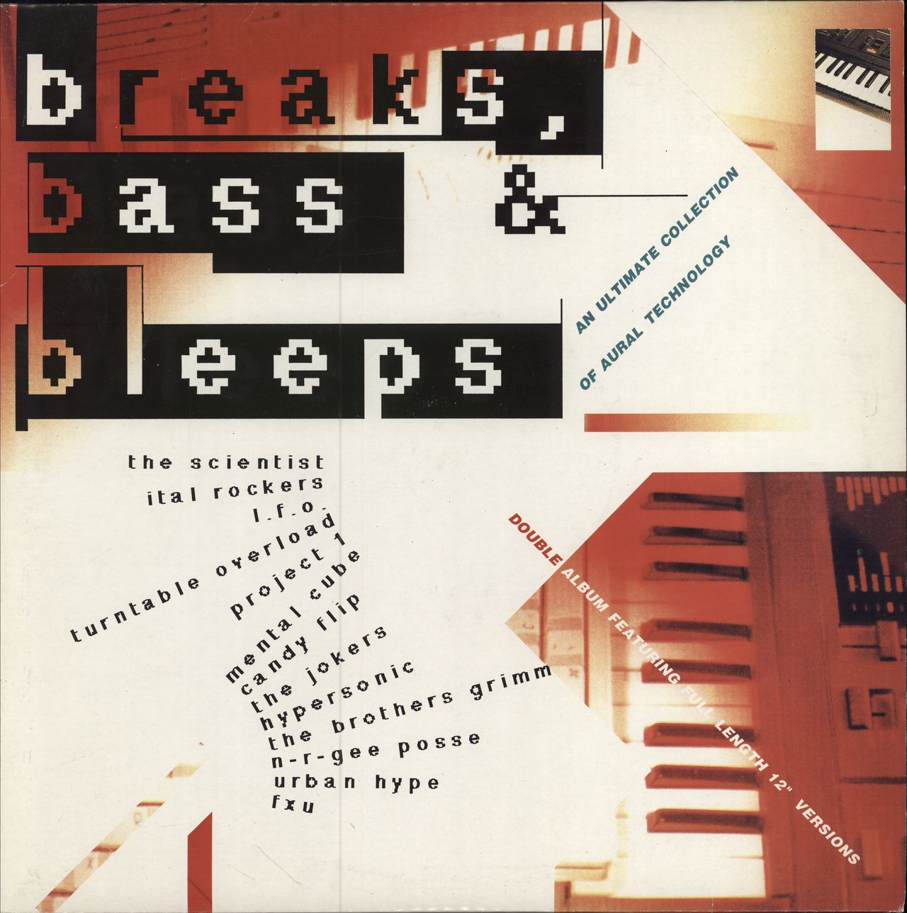 VARIOUS Breaks, Bass & Bleeps (1990 UK 13-track 2-LP vinyl set featuring L.F.O, Candy Flip, Hypersonic and more, single pocket picture sleeve. The sleeve displays just a little edge wear and the vinyl show only light signs of play RAID502)