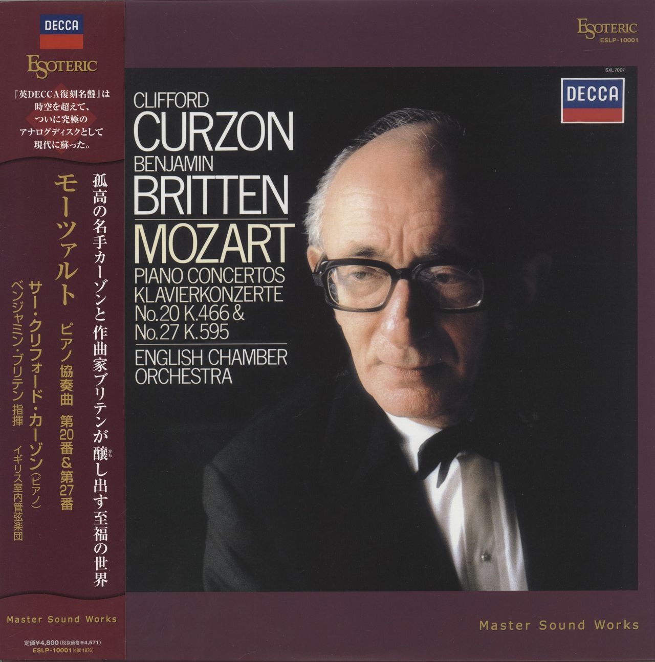 WOLFGANG AMADEUS MOZART Piano Concertos No.20 K.466 & No.27 K.595 (2008 Japanese Master Press issue of the 1982 Stereo LP, (although recorded in 1970) - now pressed on Audiophile quality 200 Gram Heavyweight Vinyl with Clifford Curzon and the English Chamber Orchestra conducted by Benjamin Britten, heavy card picture sleeve with insert and obi strip - in resealable bag. Both sleeve/obi and contents are still a lovely Near Mint! ESLP-10001)