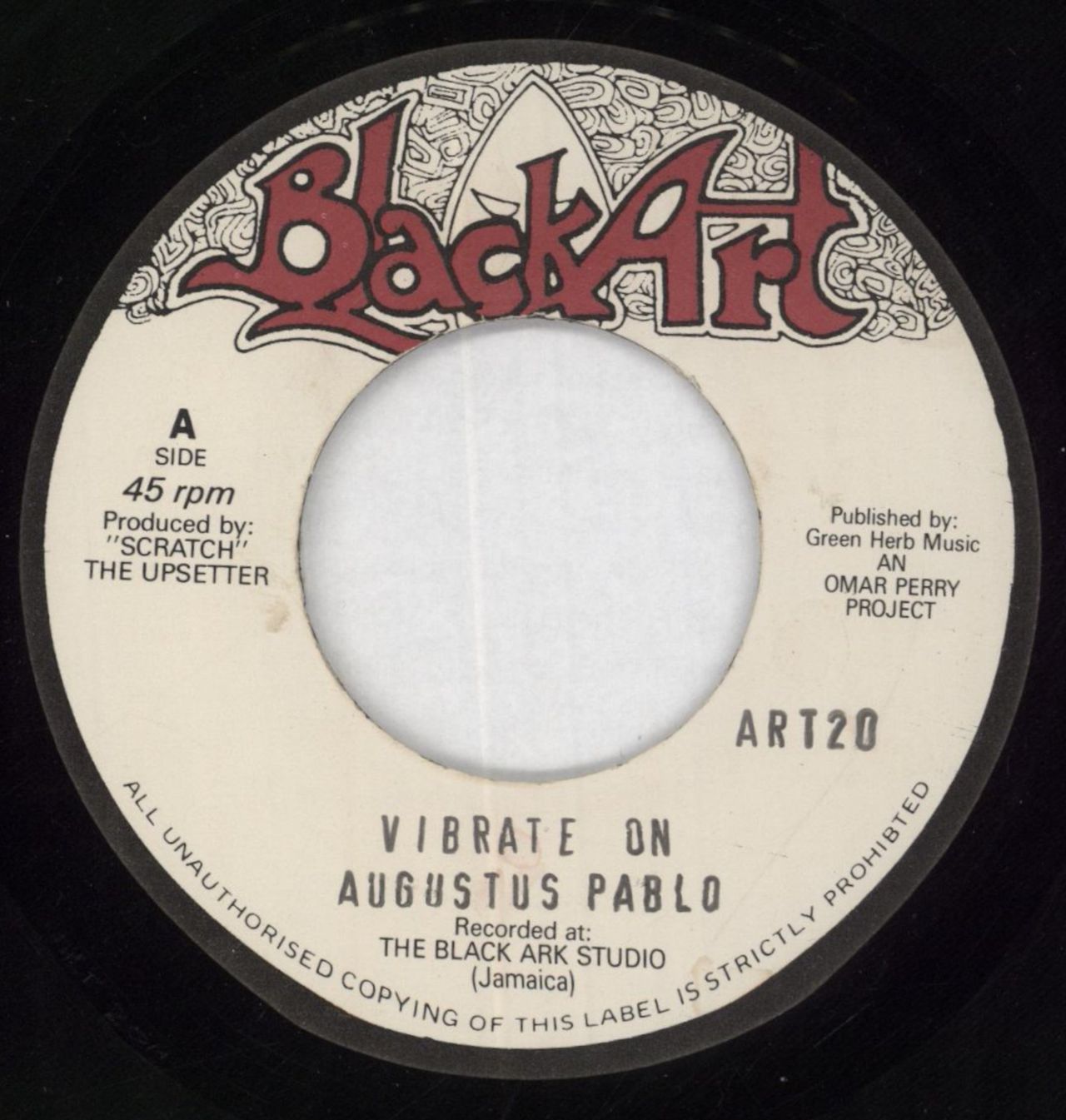 AUGUSTUS PABLO & THE UPSETTERS Vibrate On / Vibrate Dub (1999 UK issue of the 1977 split 7" vinyl single with wide-centre. An Omar Perry Project produced by Lee Scratch Perry, housed in a plain die-cut sleeve. The vinyl shows only a few cosmetic marks, none of which would have any real impact on play)