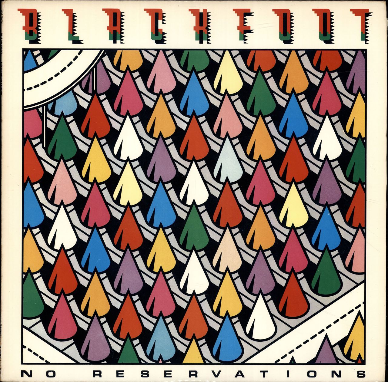 BLACKFOOT No Reservations (Late 70s Early 80s US issue 9-track vinyl LP on the Island subsidiary label Antilles, full colour picture sleeve with illustrated lyric inner. The sleeve shows only a little light wear and the inner has some foxing,whilst vinyl shows just a few lightsigns of play AN-7076)