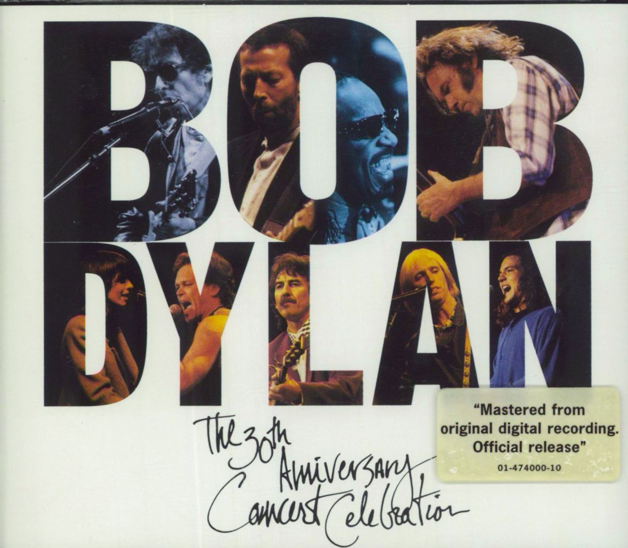 BOB DYLAN 30th Anniversary Concert Celebration (1993 UK/EU 29-track 2-CD, featuring Bob Dylan songs perfomed live by a collection of famous artists including George Harrison, Neil Young, Eric Clapton, Tom Petty, Eddy Vedder & Dylan himself. Comes housed in the original hype-stickered fat double case with front & back picture sleeve inlays, complete with a booklet including an endearing shot of Dylan with Eric Clapton & Neil Young on the cover)