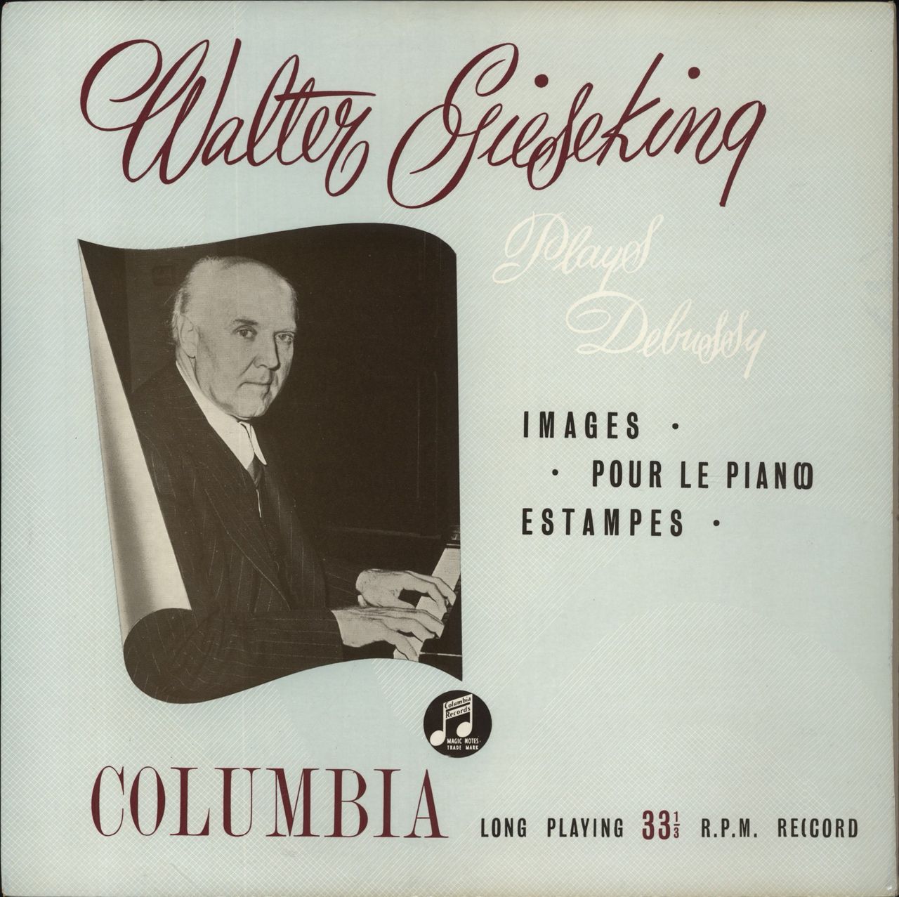 WALTER GIESEKING Debussy: Images - Pour Le Piano - Estampes (1960 UK 12-track mono vinyl LP on the blue & gold Columbia label, fully laminated picture sleeve with 'scalloped' flipbacks. The sleeve shows minimal wear and the vinyl is Near Mint33CX1137)