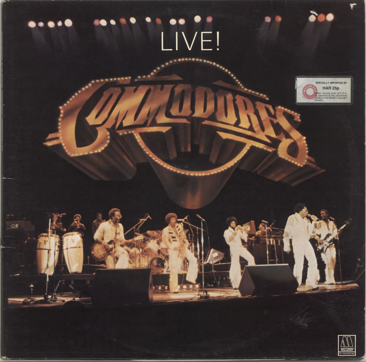 THE COMMODORES Live (1977 Dutch 12-track double vinyl LP including live versions of Easy and Brick House, plus the studio recorded bonus title Too Hot Ta Trot, gatefold picture sleeve. The sleeve shows light signs of shelfwear whilst the vinyl displaysminimal indication of play 5C152-60167)