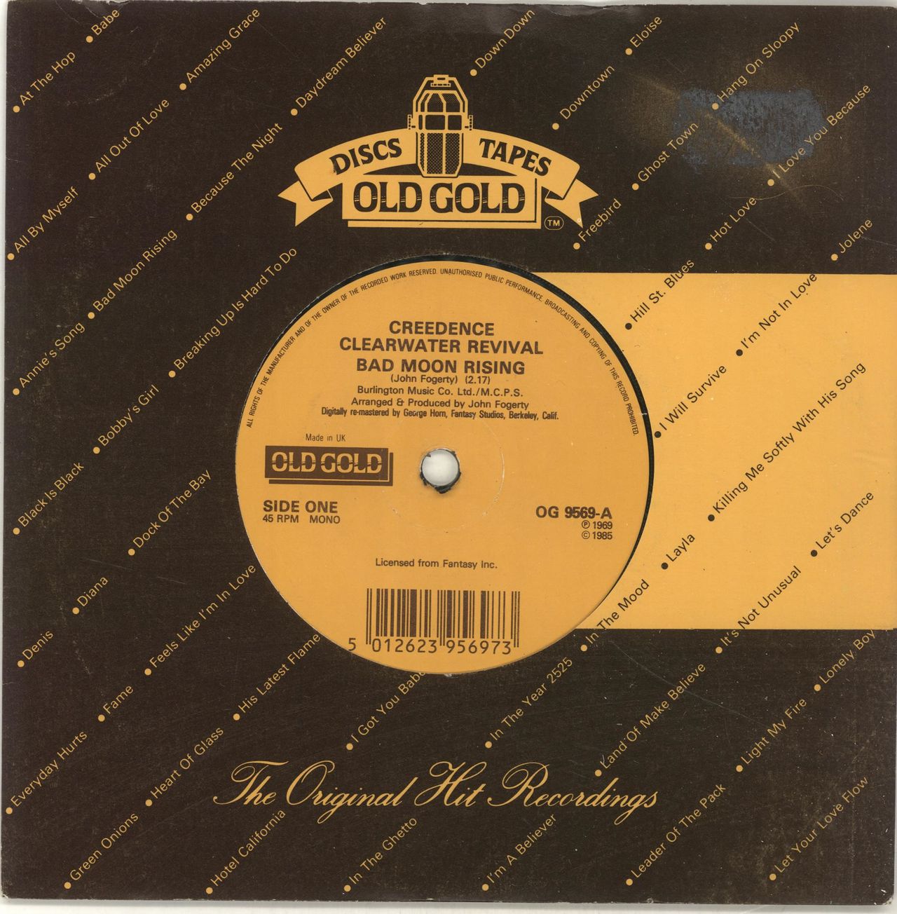 CREEDENCE CLEARWATER REVIVAL Bad Moon Rising (1985 UK Old Gold issue 7" vinyl single, also including Long As I Can See The Light, die-cut series sleeve OG9569)