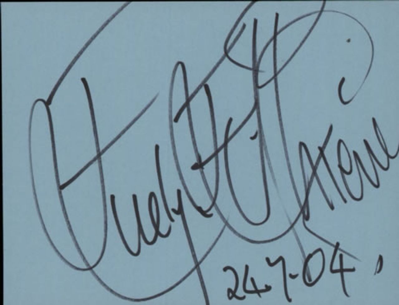 Signatures were obtained by Yuki Smythe-Park. For many years Yuki's husband Colin, was Eric Clapton's assistant tour manager, working on many of his 1980s concerts & tours. On August 26th 1990, Clapton played the Alpine Valley Music Theatre, Wisconsin, alongside Stevie Ray Vaughan & Double Trouble, Robert Cray and Buddy Guy. Following the show Colin Smythe, along with Clapton's agent Bobby Brooks, his bodyguard Nigel Browne and Stevie Ray Vaughan boarded a helicopter bound for Chicago. Tragically, the helicopter crashed shortly after take-off, killing all on board. Yuki was friends with many artists from that era and continued to attend gigs and fill her numerous autograph books. This signature was obtained in person by Yuki.