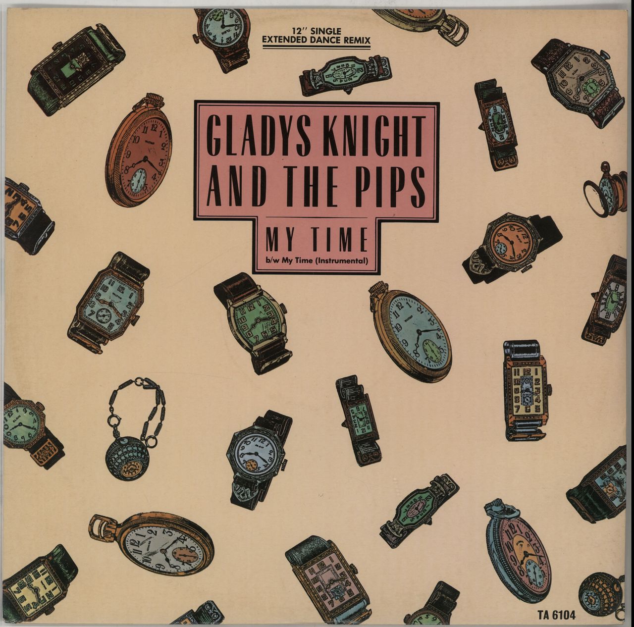 GLADYS KNIGHT & THE PIPS My Time (1985 UK 12" vinyl single, also featuring the Instrumental version, picture sleeve with gold promo stamp on the back TA6104)