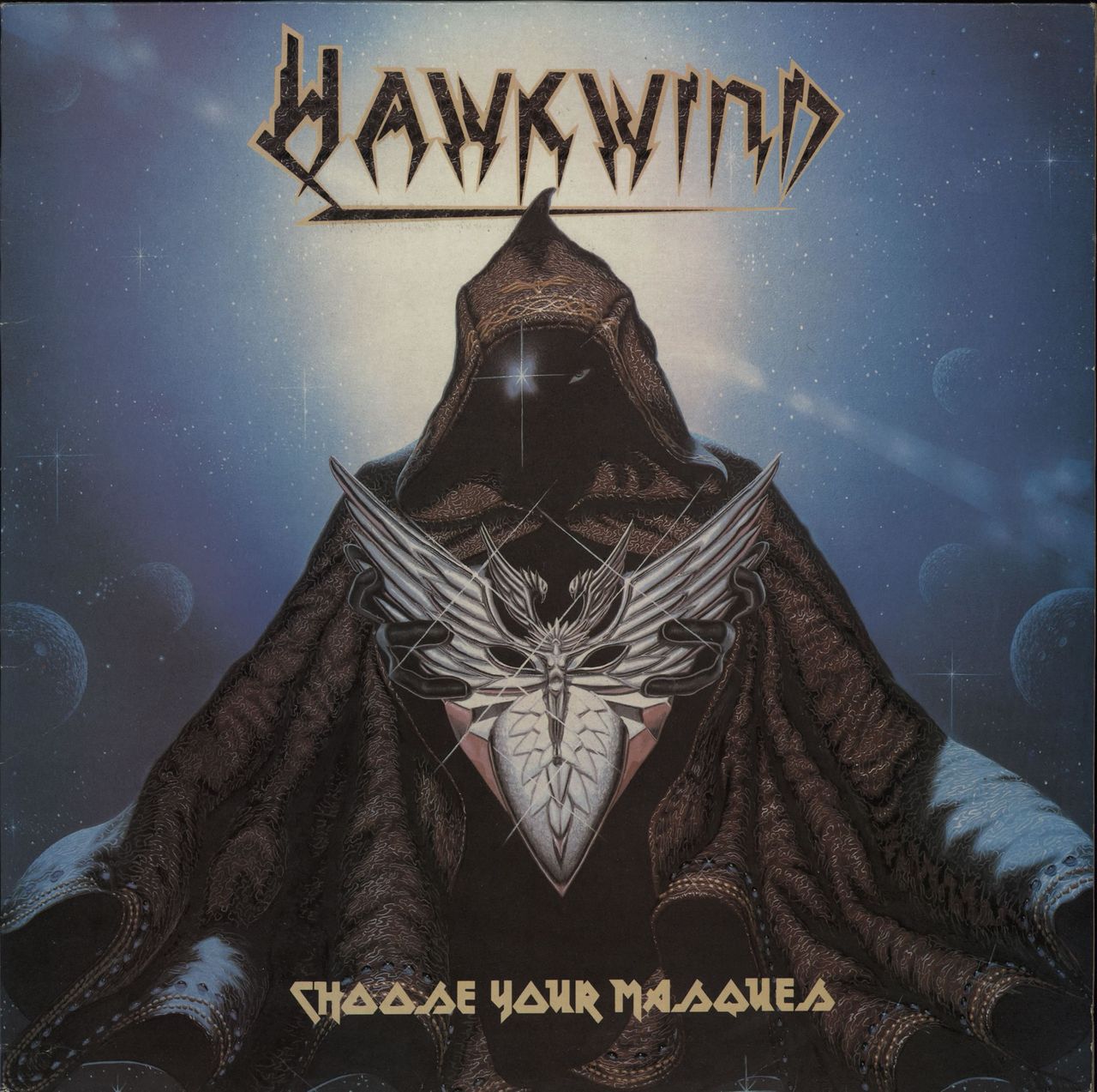 HAWKWIND Choose Your Masques (1982 UK 10-track vinyl LP, the group's thirteenth studio album, featuring a re-recording of the classic Silver Machine , glossy picture sleeve. The sleeve shows only light edgewear, whilst thevinyl looks barely played RCALP6055)
