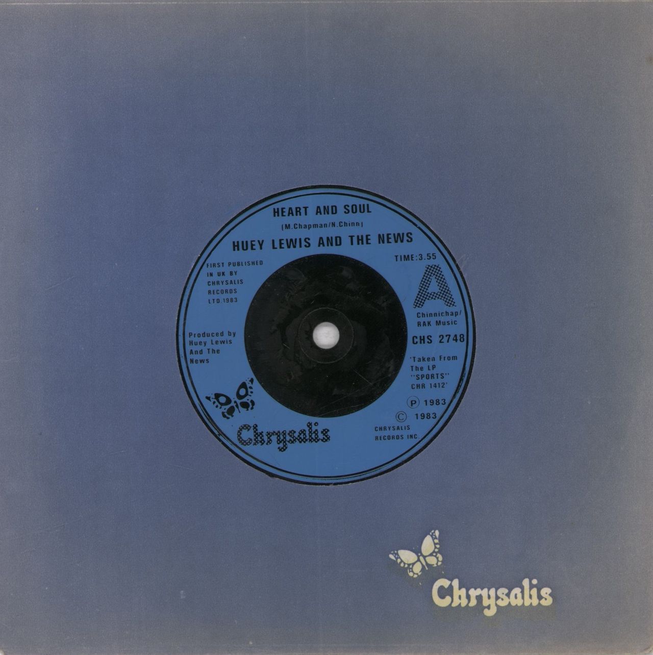 HUEY LEWIS & THE NEWS Heart And Soul (1983 UK 7" vinyl single, includes You Crack Me Up, company die-cut paper sleeve CHS2748)