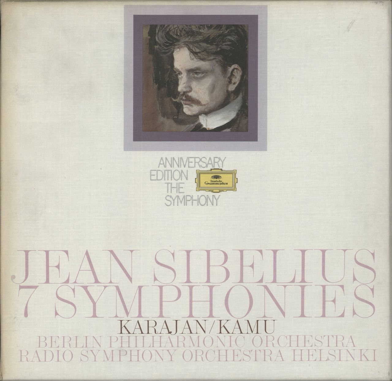 KARAJAN / KAMU conducting the BERLIN PHILHARMONIC ORCHESTRA / RADIO SYMPHONY ORCHESTRA HELSINKI 7 Symphonies (1973 UK 26-track 6-LP vinyl set, embosses textured picture box with 14-page sleevenotes booklet. The box shows faint wear and the vinyl is Near Mint)
