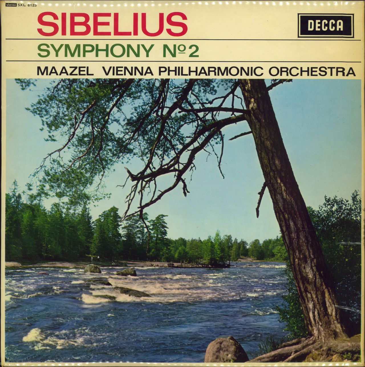 LORIN MAAZEL conducts THE VIENNA PHILHARMONIC ORCHESTRA Symphony No. 2 (Mid to late 60s UK stereo LP on a non-deep groove wideband unboxed Decca label with 'Made In England' perimeter print, one of the finest recordings of Sibelius' 1902 Symphony which revived the classical tradition with a more personal but no less grandiose approach, front laminated picture sleeve. The sleeve is Excellent with just a little faint discolouring to a back corner & the vinyl is Excellent to Near Mintwith few signs of play SXL6125)