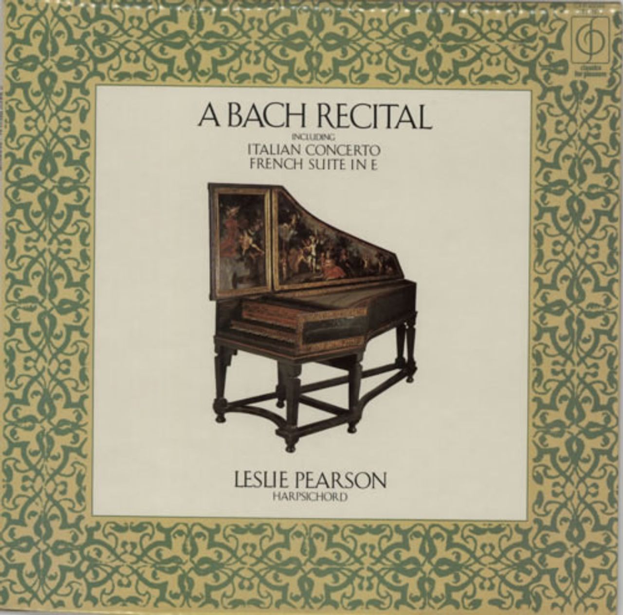 LESLIE PEARSON A Bach Recital (1973 UK 4-track stereo LP featuring Harpsichord performances of Chromatic Fantasia And Fugue In D Minor, Italian Concerto In F Major, Fantasia In C Minor & French Suite No.6 In E Major, front laminated picture sleeve. The sleeve shows minimal shelfwear & the vinyl remains near 'as new' CFP40049)