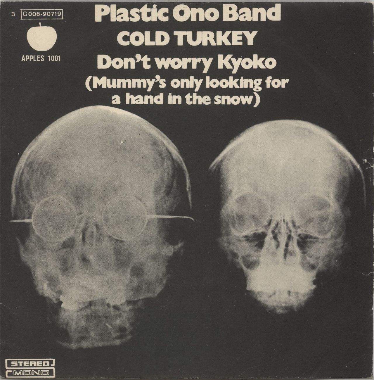 JOHN LENNON/PLASTIC ONO BAND Cold Turkey (1970 Italian wide centre 7" vinyl single on the Apple label, also including Don't Worry Kyoko (Mummy's Only Looking For A Hand In The Snow), housed in the original picture sleeve. The sleeve displays some mild wear with some creases along the right has open edge and a small nick, whilst the vinyl has only light signs of play, an Excellent example and the first we have seen)