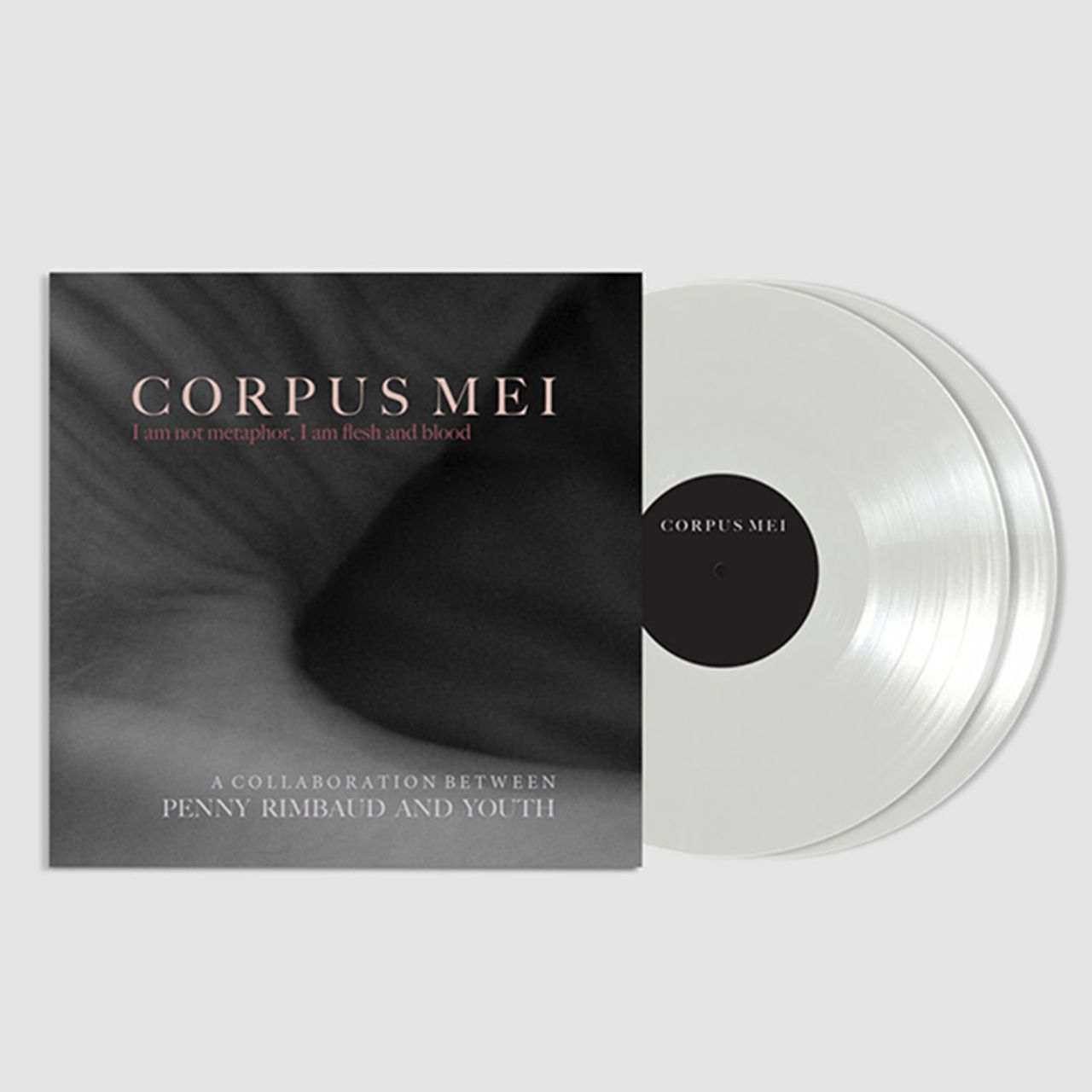PENNY RIMBAUD & YOUTH Corpus Meu (2022 UK/EU limited edition 10-track double album 2-LP pressed on Light Grey Vinyl and limited to just 500 copies. Featuring ten poems written and performed by Penny Rimbaud, with further vocals by Eve Libertine, and music composed and created by Youth. Gatefold picture sleeve with poster, factory sealed)