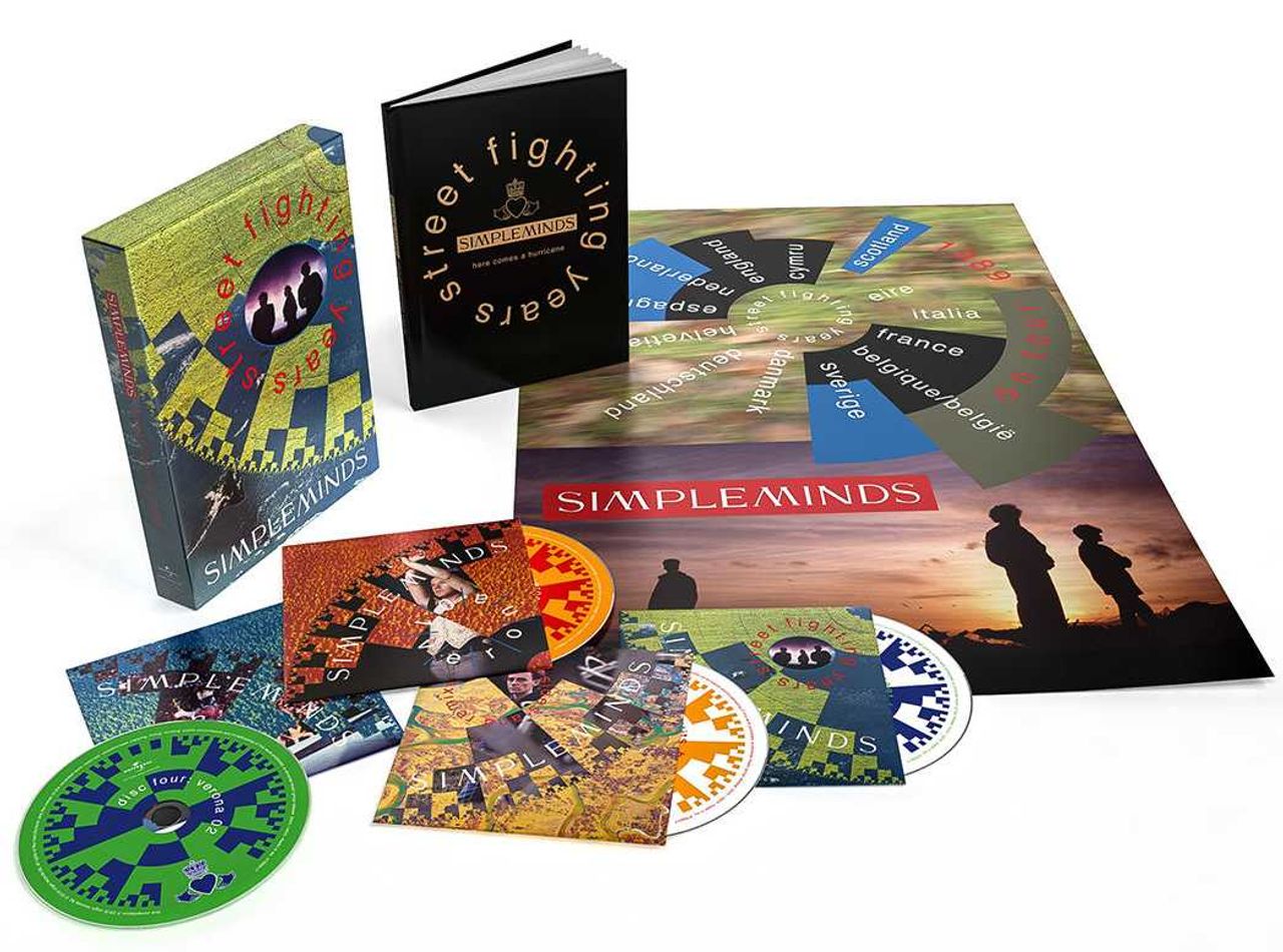 SIMPLE MINDS Street Fighting Years (2020 UK Super Deluxe Edition FOUR CD set comprising a remastered version of their 1989 eighth studio album accompanied by a bonus disc of B-sides, edits and 12 remixes plus most of the previously unissued Verona show from 1989 pressed across two additional discs. All four discs come issued within individual card wallet sleeves housed inside the two-piece picture box complete in the hardback book with a booklet designed by long time contributor Stuart Crouch and contains sleeve notes by Daryl Easlea who interviewed the band and producer Trevor Horn extensively for the set!)