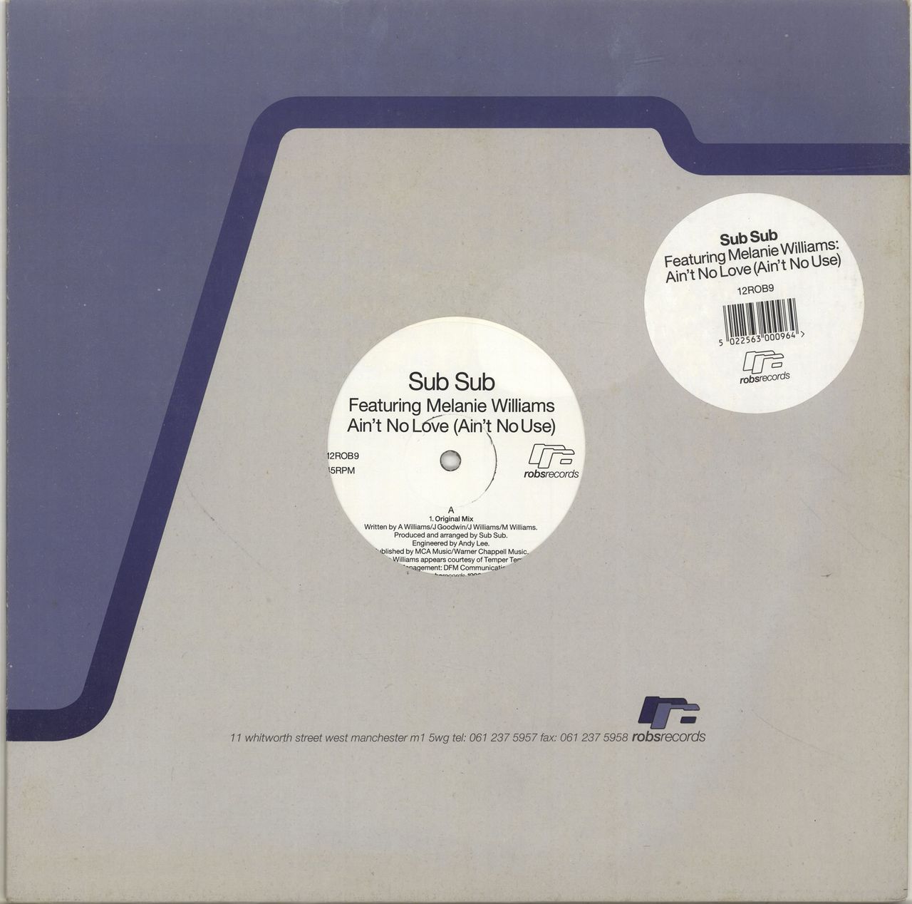 SUB SUB Ain't No Love (1993 UK 3-track 12" vinyl single from the pre-Doves outfit, including the Original Version plus the Parkside Mix & Rub Dub. The vinyl appears in excellent condition and comes issued in the custom-stickered Robs company die-cut card sleeve 12ROB9)