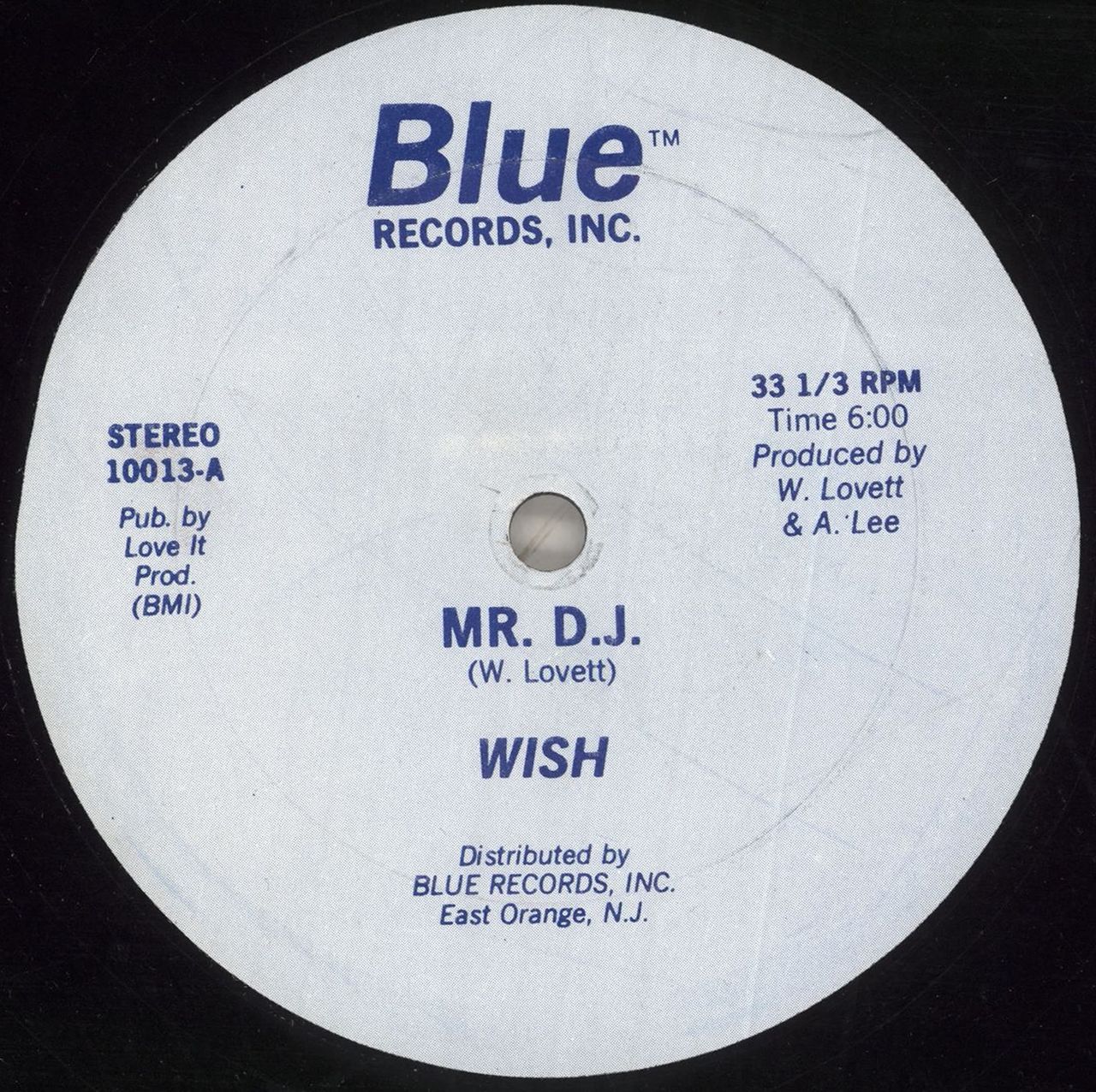 WISH Mr D.J. (Disco Boogie 1983 US 12" single on Blue Records, Inc. produced by Winfred Lovett [The Manhattans], also featuring the 6:17 Instrumental version, plain die-cut sleeve. The vinyl remains in Excellent condition [small paper mark on b-side label] with just minor evidence of play)