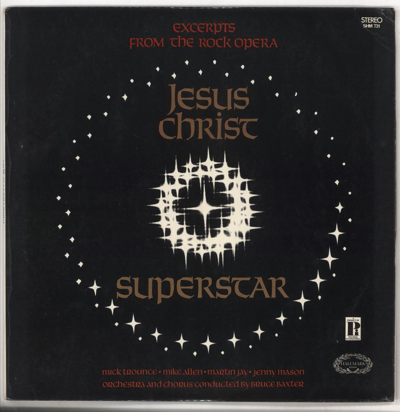 ORIGINAL CAST RECORDING Jesus Christ Superstar (Excerpts From The Rock Opera) (1971 UK 10-track vinyl LP, featuring Mick Trounce, Mike Allen, Martin Jay and others, front laminated picture sleeve. The sleeve and vinyl are in excellent condition SHM731)