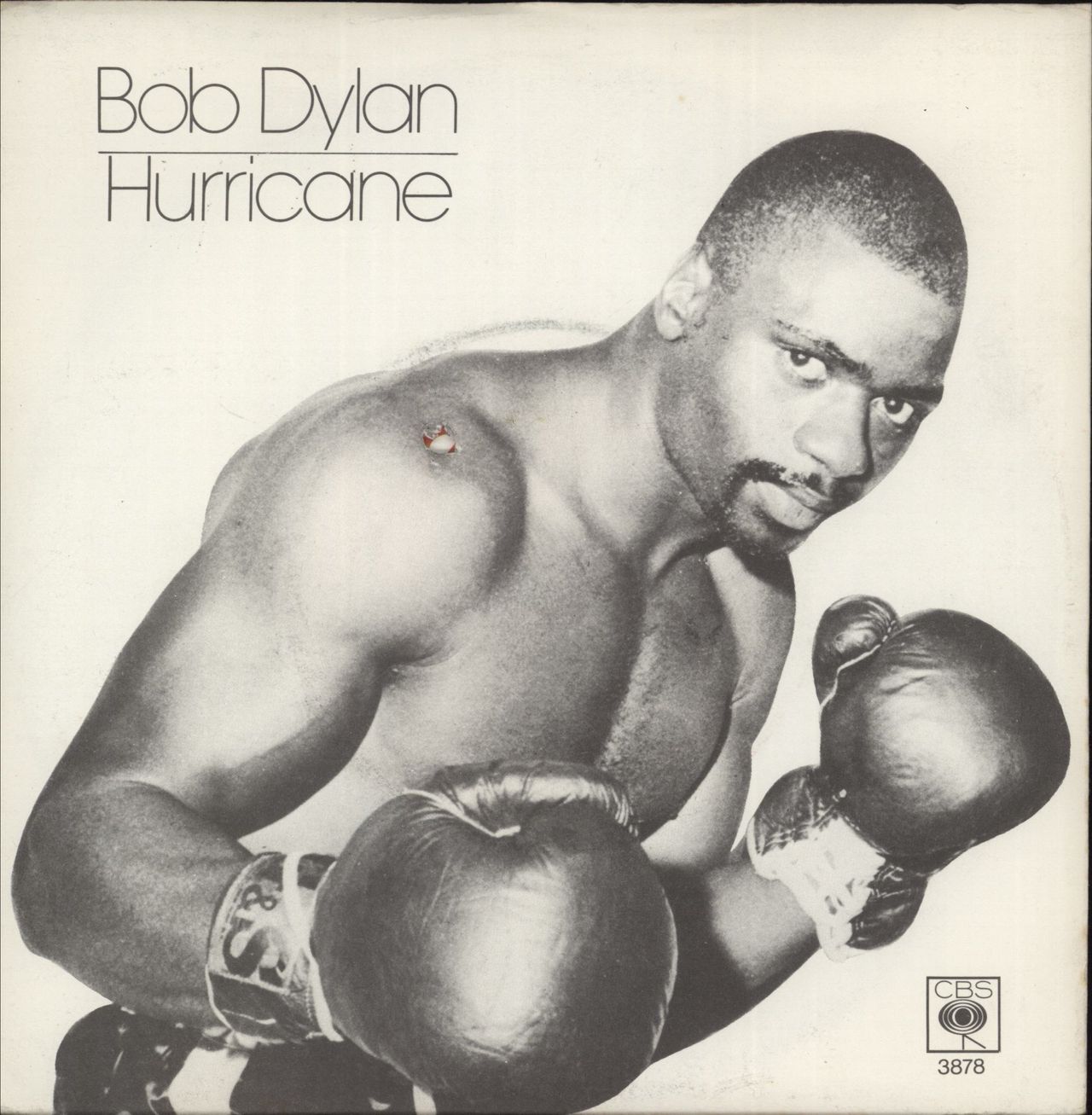 BOB DYLAN Hurricane (1975 UK Double A side solid centre vinyl 7", featuring Part 1 which plays at 45rpm, and the Full Length Version which plays at 33rpm, housed inside the scarce picture sleeve featuring a period shot of Rubin 'Hurricane' Carter. Therare sleeve has a deletion hole-punch through the sleeve and label of the disc itself with just a little general wear and light signs of age, whilst the vinyl remains in wonderful barely played condition. A classic piece of Dylan social comment in wonderful condition SCBS3878)