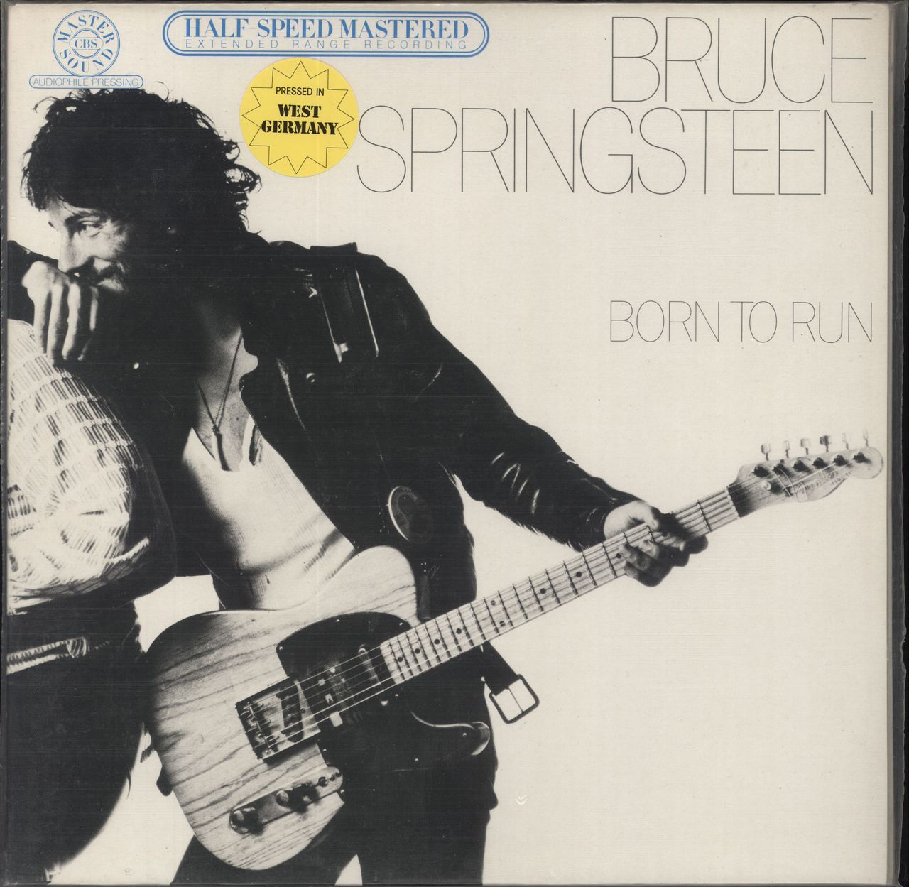 BRUCE SPRINGSTEEN Born To Run (Scarce 1980 German CBS Mastersound 8-track Half-Speed Mastered audiophile vinyl LP, his third studio album including the singles Tenth Avenue Freeze Out and the title track. The gatefold picture sleeve does have an unfortunate seam split to the top edge of the back pocket but has the lyrics printed across the inside spread and comes with the Mastersound insert and its Mastersound stickered bag while the vinyl itself looks barely played CBSH80959)