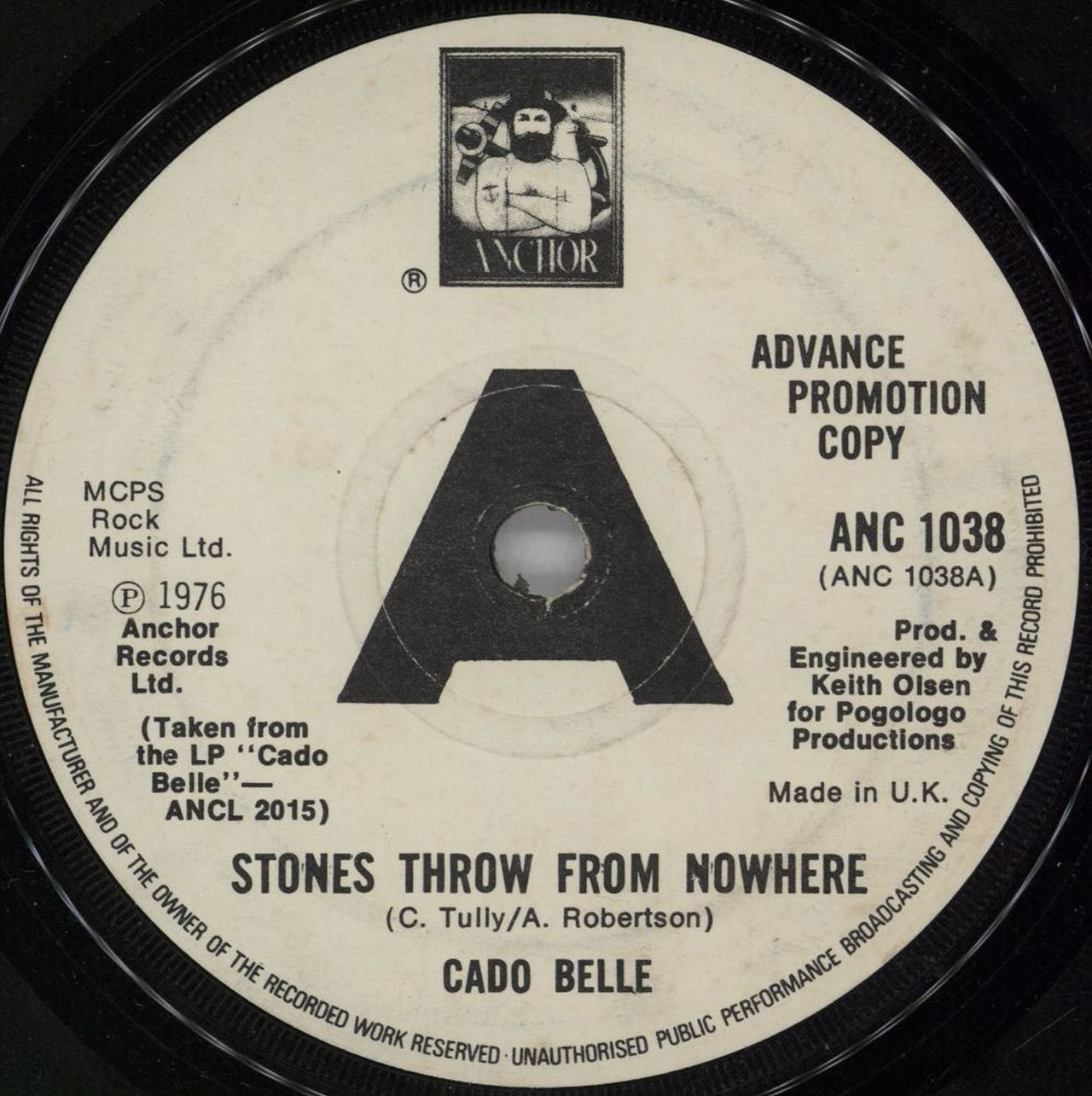CADO BELLE Stones Throw From Nowhere (1976 UK 'A' label white title label advance promotional vinyl 7" for the single release, also including Airport Shutdown, Anchor company die cut paper sleeve ANC1038)