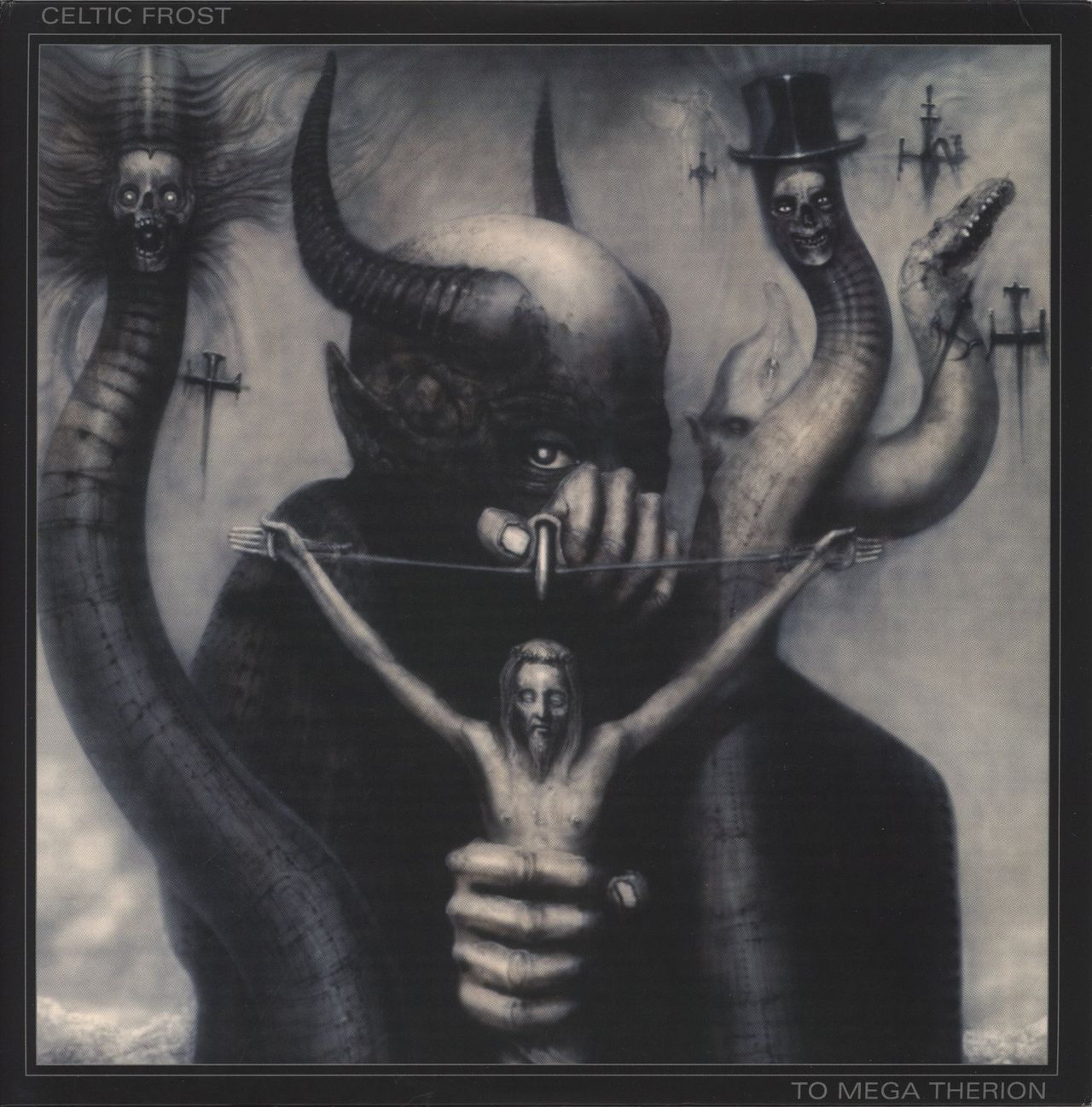CELTIC FROST To Mega Therion (2017 UK 16-track double LP, pressed on 180gram Vinyl the 1985 second studio album from the Swiss trio that helped define the basis of extreme metal, featuring The Usurper and Circle Of The Tyrants; gatefoldpicture sleeve featuring HR. Giger artwork. The sleeve has a little edge creasing. Whilst the vinyl shows a little cosmetic storage wear and minimal signs of play NOISE2LP011)
