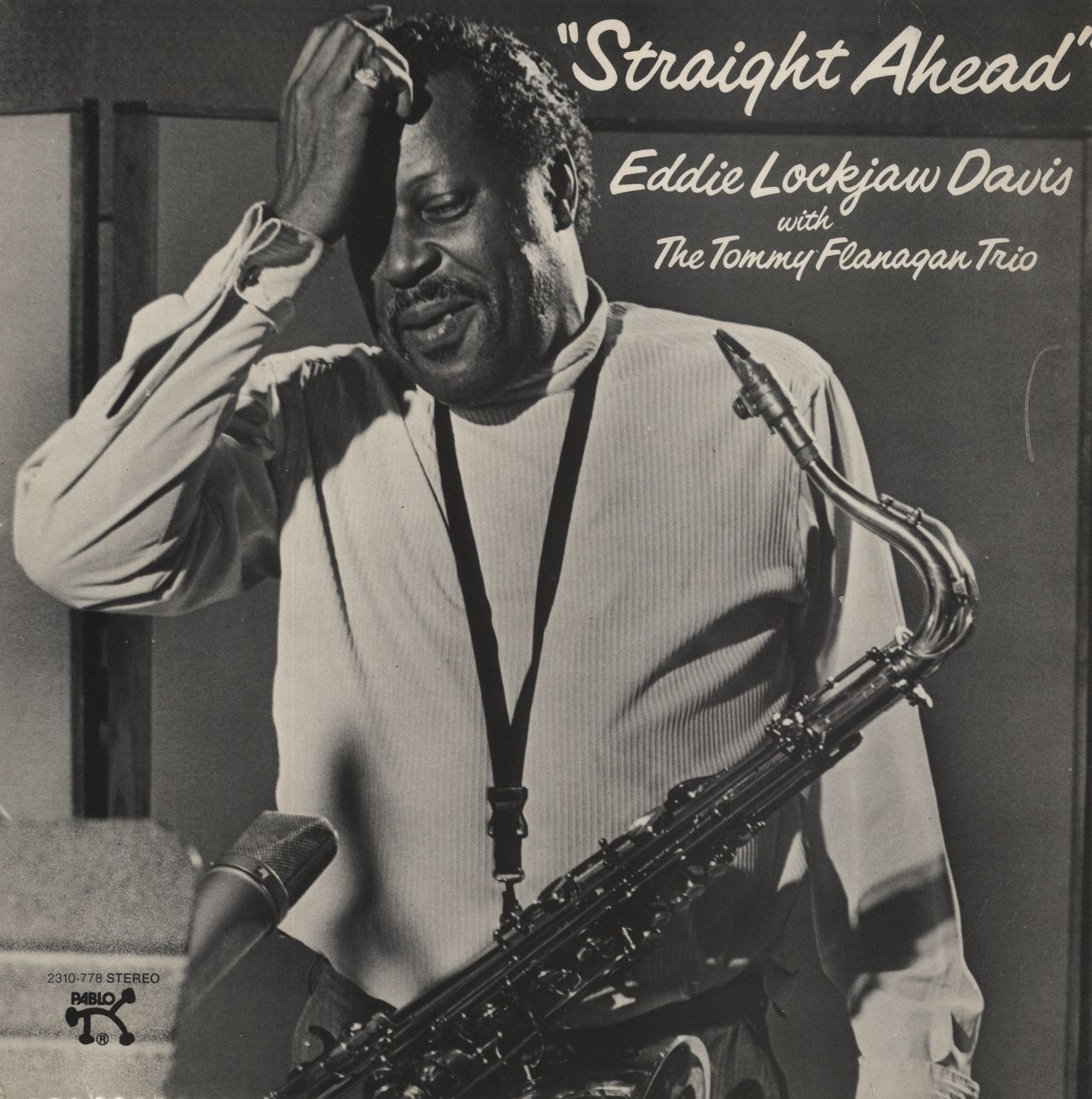 EDDIE 'LOCKJAW' DAVIS Straight Ahead (1976 UK 9-track LP on Pablo, with backing from the Tommy Flanagan trio, fully laminated picture sleeve. The sleeve shows just a little creasing & the vinyl is clean in Excellent condition with only a little spindlewear to indicate play)