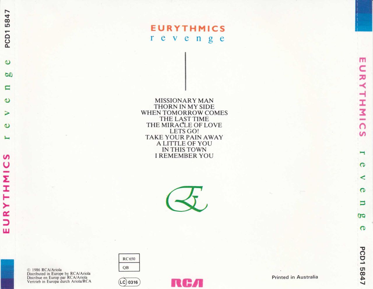 EURYTHMICS Revenge (Mid 1980s Australian first issue