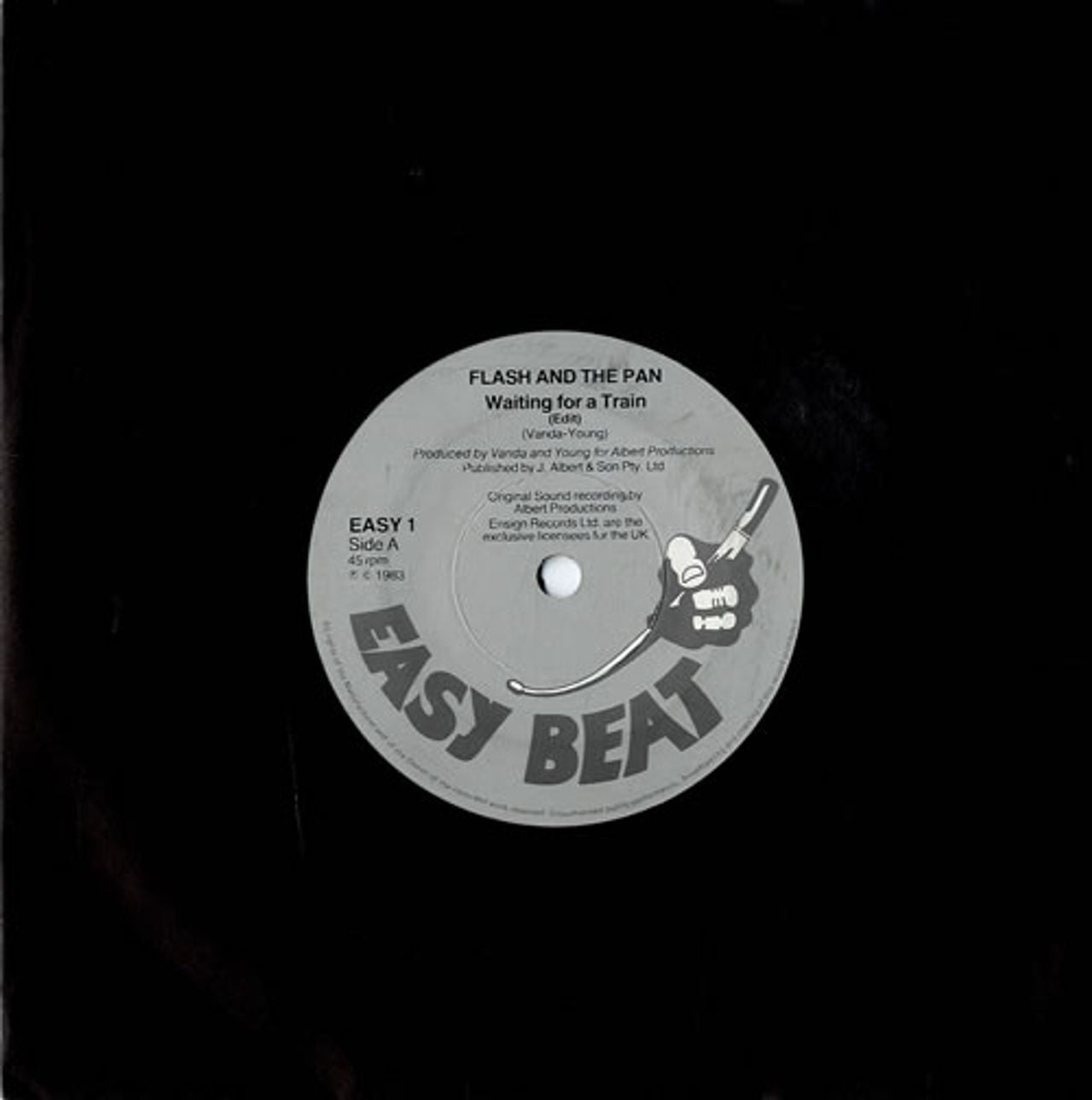 FLASH AND THE PAN Waiting For A Train (1983 UK solid centre 7" vinyl single, also including the Instrumental Version of the title track, plain company die cut paper sleeve EASY1)