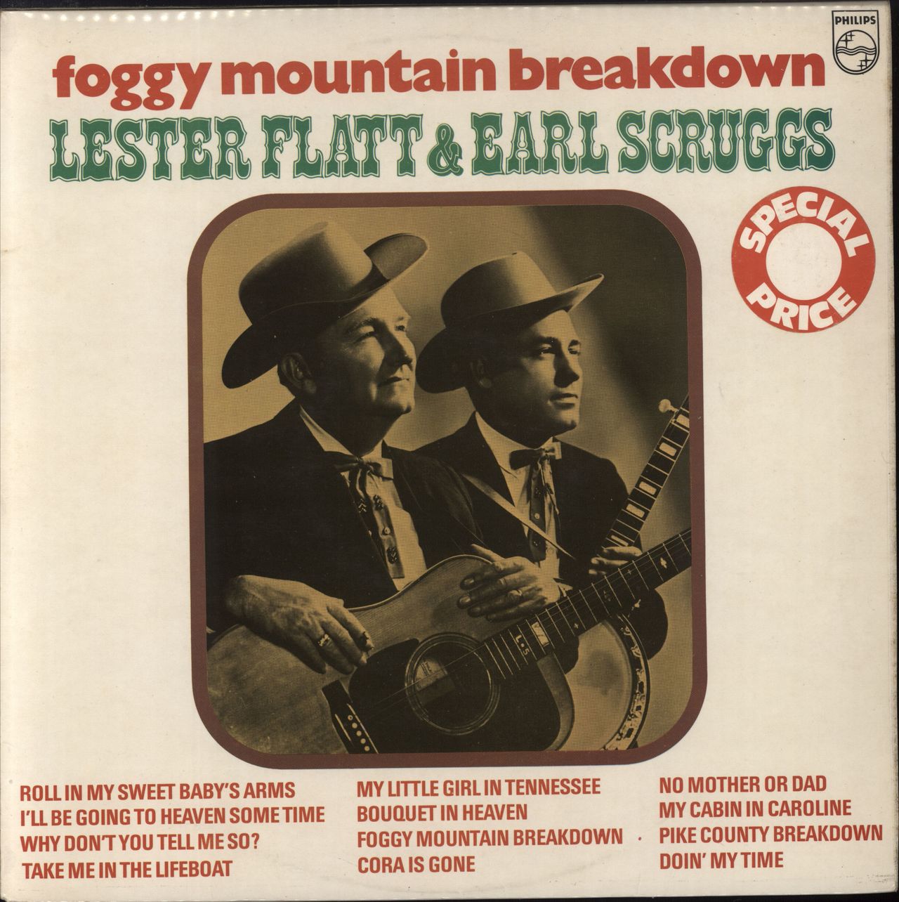 FLATT & SCRUGGS Foggy Mountain Breakdown (1970s UK 12-track vinyl LP, a superb retrospective featuring historic early recordings from the legendary bluegrass duo, captured during sessions in Knoxville, Tennessee in 1948 and Cincinnati, Ohio in1949. These formative performances showcase the raw energy and groundbreaking banjo work that would come to define the genre. Housed in a fully laminated picture sleeve with original 'Special Price' sticker intact. The sleeve displays just alittle minor edgewear, whilst the vinyl shows few signs of play, remaining in Excellent condition)
