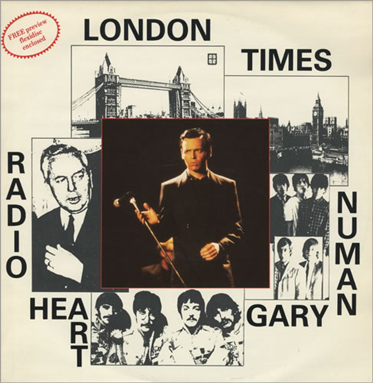RADIO HEART featuring GARY NUMAN London Times (1987 UK limited edition 2-track 12" vinyl single featuring Extended Version backed with 'Rumour', also includes a bonus preview single 7" vinyl flexi-disc. The glossy picture sleeve displays only light wear whilst vinyl and flexi look barely played GFMT112)