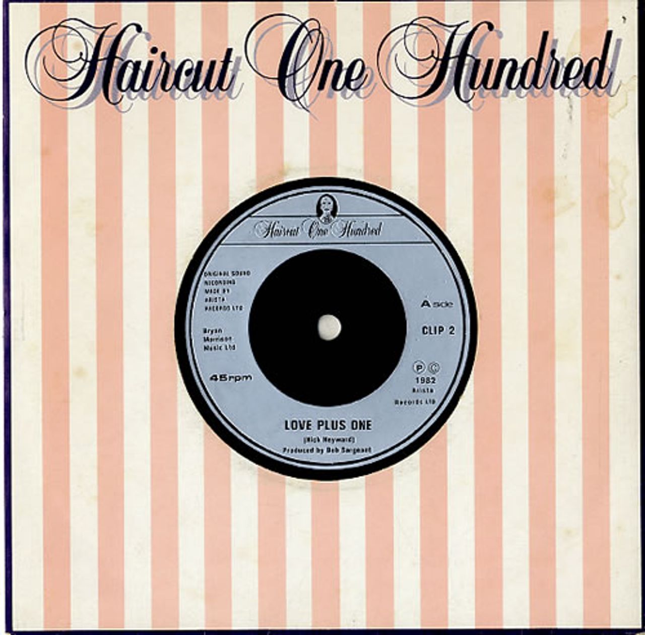 HAIRCUT 100 Love Plus One (1982 UK injection moulded 7" vinyl single, also including Marine Boy, Pink striped die-cut sleeve CLIP2)