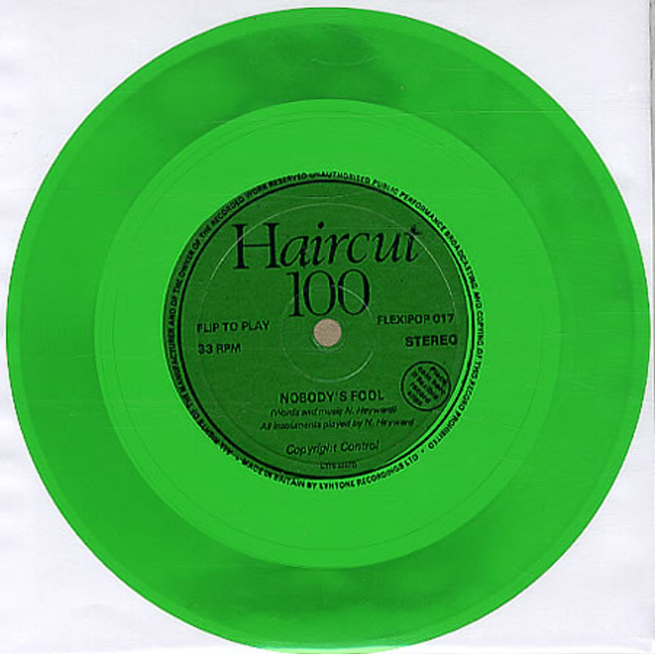 HAIRCUT 100 Nobody's Fool (1982 UK 1-track single-sided 7" GREEN flexi disc, originally given away with issue 17 of Flexipop magazine FLEXIPOP017)