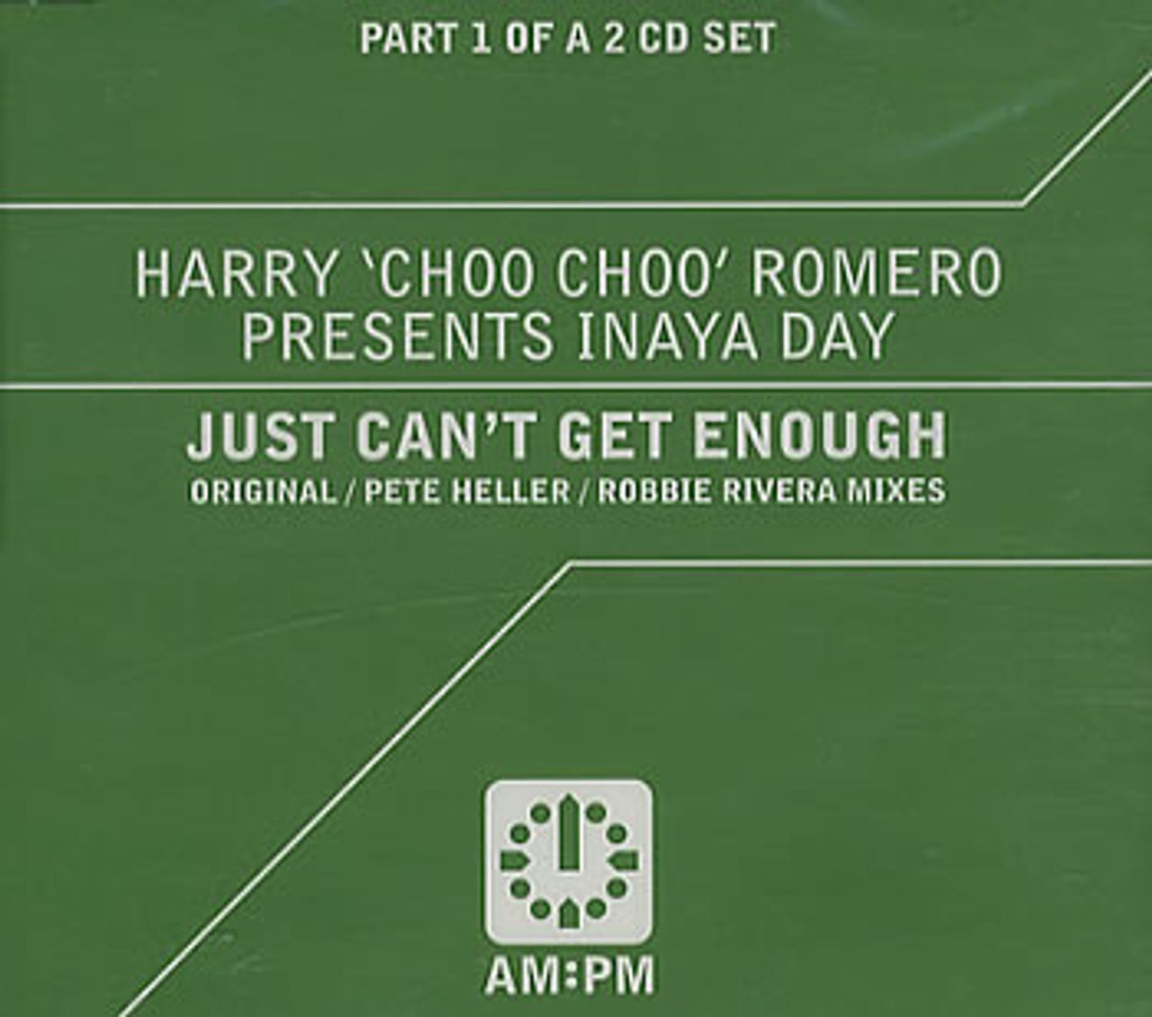 INAYA DAY Just Can't Get Enough (1999 UK 3-track CD single, produced by Harry 'Choo Choo' Romero, includes Pete's Latino Vocal Lick and Robbie Rivera's Bangin' Dub Pt. 1, picture sleeve CDAMPM121)