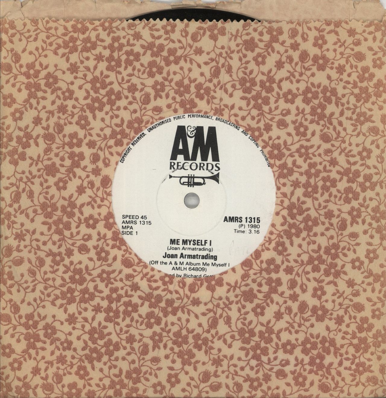 JOAN ARMATRADING Me Myself I (1980 Rhodesian solid centre 7" vinyl single with When You Kisses Me. Housed in a custom die-cut sleeve. The vinyl shows minimal sign of wear and remains in excellent condition AMRS1315)