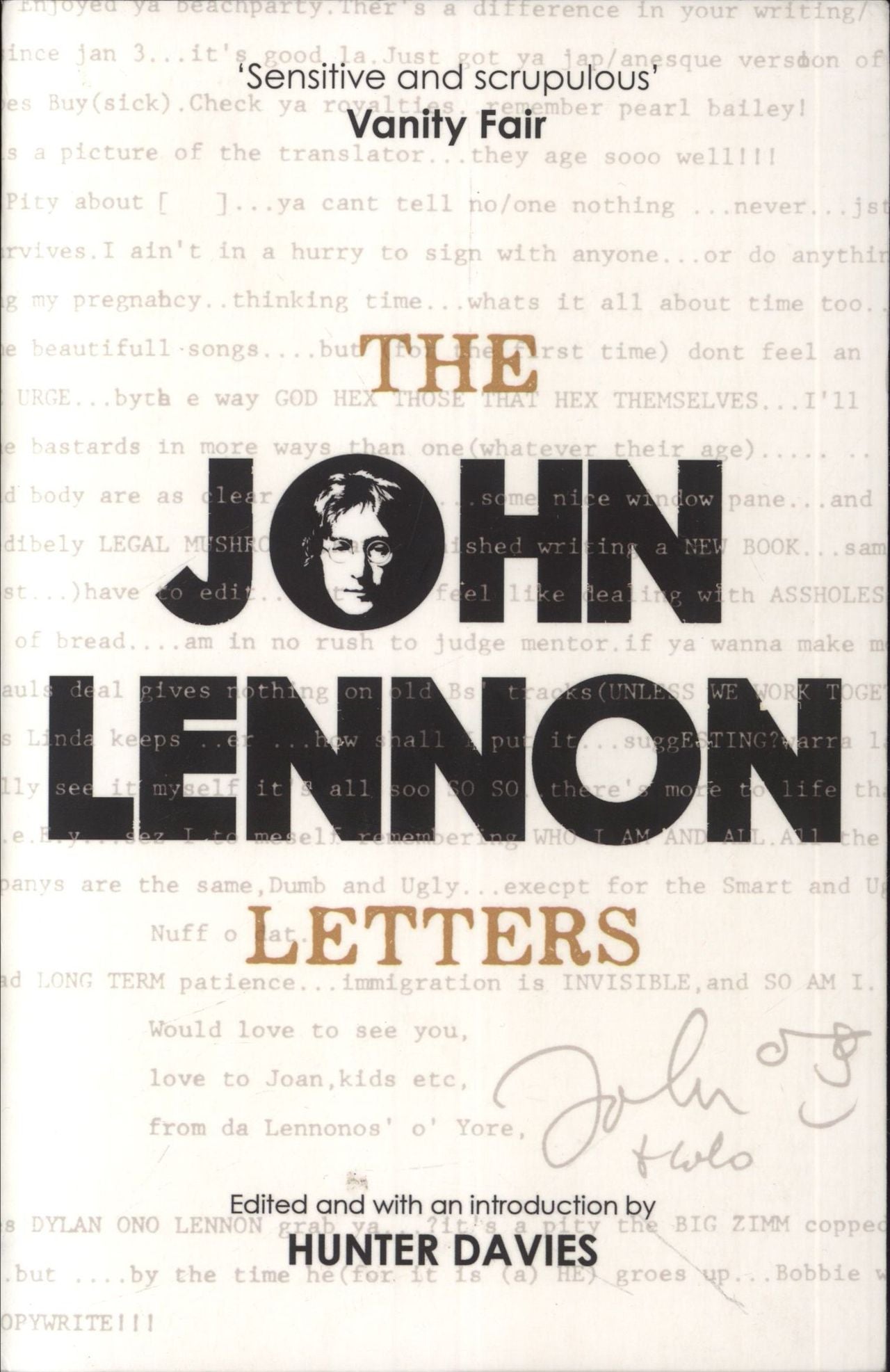 JOHN LENNON The John Lennon Letters (2012 UK 388-page softback book, edited and with an introduction by Hunter Davies. The book contains a collection of letters and postcards that John Lennon wrote to his friends, family, strangers, newspapers, organisations and lawyers throughout his life. A unique insight into the mind of one of the great figures of our times. The cover shows a few light signs of shelfwear whilst all pages are Near Mint)