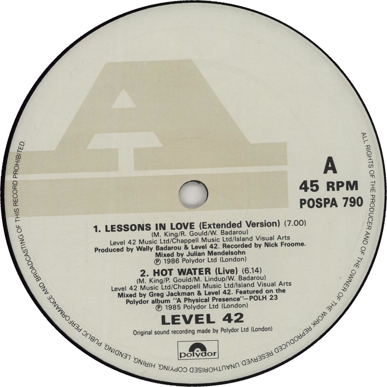 LEVEL 42 Lessons In Love (1986 UK limited edition 3-track 12" including Extended Version, plus Something About You [U.S. Remix] and Hot Water [Live], housed in a plain die-cut sleeve POSPA790)