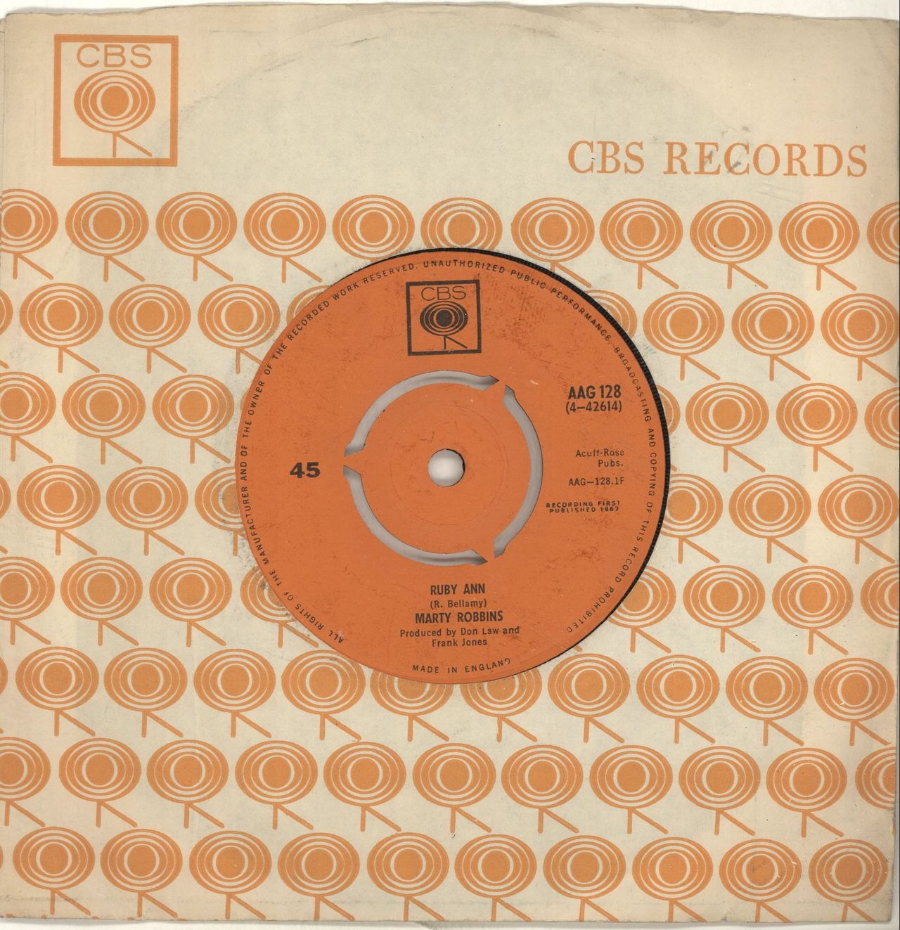 MARTY ROBBINS Ruby Ann (1962 UK 7" vinyl single with intact three prong centre, also including Won't You Forgive, CBS company die-cut paper sleeve AAG128)