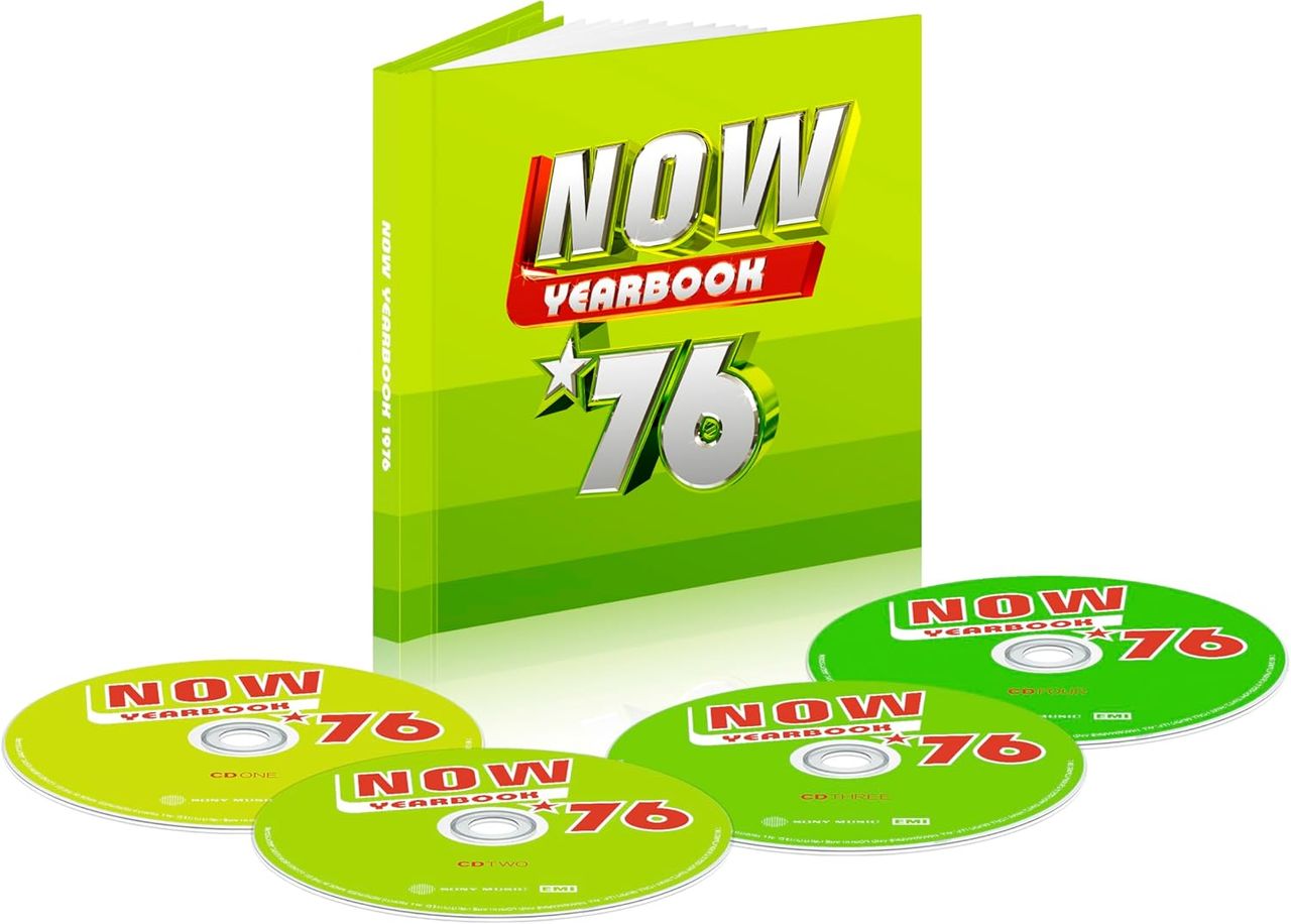 NOW THAT'S WHAT I CALL MUSIC NOW Yearbook '76 (Deluxe Hardcover Edition 4-CD set offering 84-tracks across four discs, revisiting the unforgettable hits and the best from the singles charts of 1976 with a deep dive into the golden age of pop. NOW Yearbook 1976 celebrates one of the most diverse and exciting years in pop history, packed with timeless singles from rock legends, pop icons, disco pioneers and soul greats. Opening with Queen's anthemic Somebody To Love and Fleetwood Mac's Say You Love Me, Wings' Silly Love Songs, Thin Lizzy's The Boys Are Back In Town, and Elton John & Kiki Dee's chart-topping Don't Go Breaking My Heart. Disco flourishes with Donna Summer's Love To Love You Baby, Diana Ross's Love Hangover and Wild Cherry's Play That Funky Music, while country and soul are represented by Dolly Parton's Jolene, Gladys Knight & The Pips' Midnight Train To Georgia and Marvin Gaye's I Want You. This deluxe edition comes in hardback book packaging with a 28-page booklet featuring notes on every track and rare photos, making it an essential collector's edition for fans of pop history. Factory sealed & recommended)