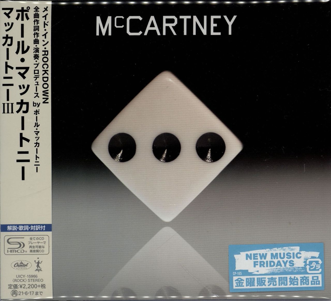 PAUL MCCARTNEY McCartney III (2020 Japanese-only 11-track Super High Material SHM-CD [Super High Material CD - playable on all CD players]. Housed in a gatefold card picture sleeve with the white dice artwork, lyric booklet and the obi strip, still in the un-opened stickered re-sealable bag from new UICY-15966)