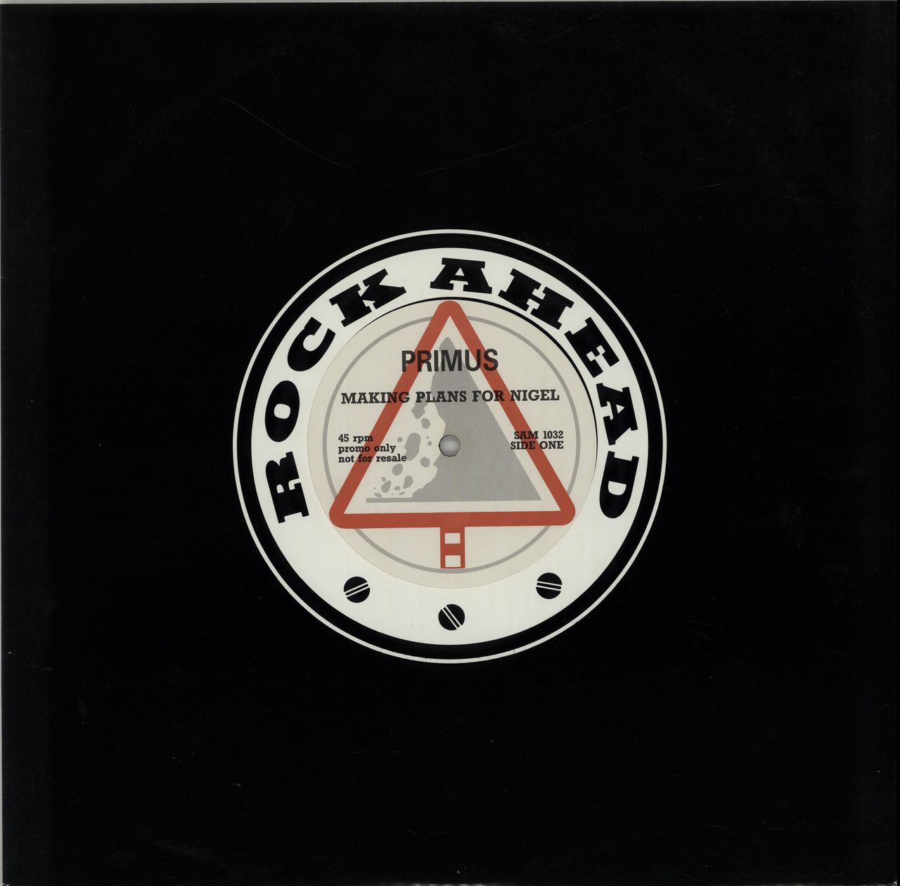 PRIMUS Making Plans For Nigel (Rare 1992 UK promotional only vinyl 12", also including Have A Cigar, taken from the Miscellanious Debris EP / Making Plans For Nigel EP, custom roadsign style labels in an East West 'Rock Ahead' company die-cut card sleeve. The vinyl is Excellent with odd faint paper scuff and minimal signs of play. SAM1032)