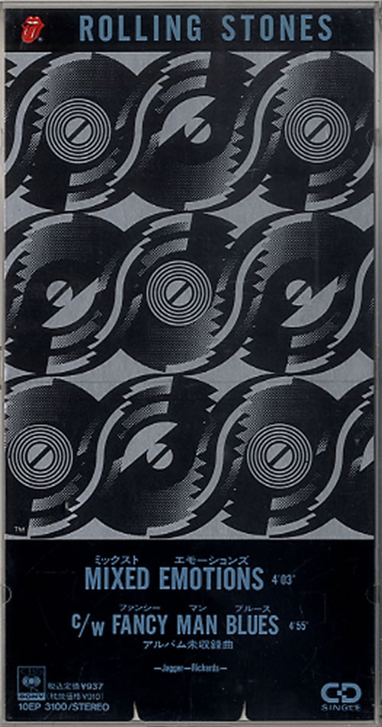ROLLING STONES Mixed Emotions (1989 Japanese only 3" CD single, also including Fancy Man Blues, within a unique silver, black & blue snap-pack picture sleeve with lyrics on the reverse 10EP-3100)
