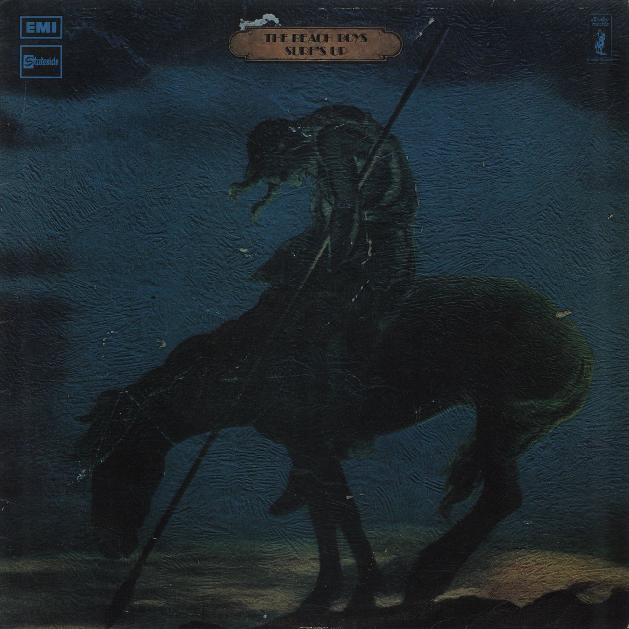 THE BEACH BOYS Surf's Up (Original 1971 UK 10-track stereo vinyl LP on a one EMI box logo $tateside label, their seventeenth studio album including the singles Long Promised Road and the title track. The pinched spine textured picture sleeve shows moderate edgewear/scuffing, whilst the vinyl shows a few scuffs/hairlines, not affecting play. A Very Good play copy of perhaps their finest album SSL10313)