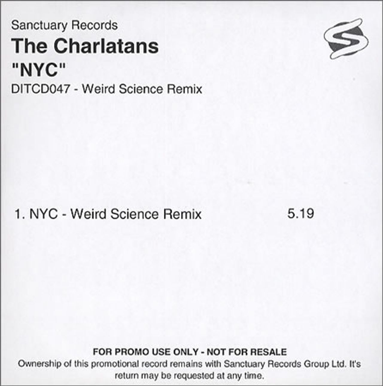 THE CHARLATANS NYC (2006 UK Sanctuary 1-track promotional CD-R featuring the exclusive Weird Science Remix [5:19] of the track taken from their 'Simpatico' album. The custom printed disc comes issued in a clear PVC sleeve with the custom title insert DITCD047)